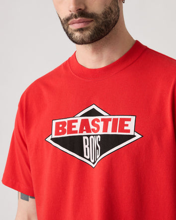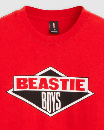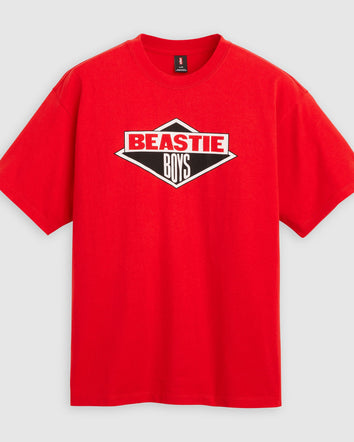 Beastie Boys의 상징적인 다이아몬드 로고를 전면에 과감하게 담은 레드 반팔티입니다.