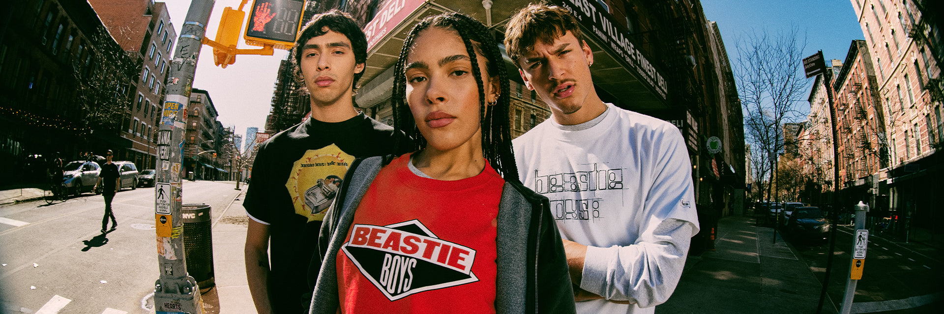 Levi's® x Beastie Boys 밴드 티 컬렉션은 트리오의 상징적인 미학과 그들을 탄생시킨 도시에서 영감을 받아 완성된 4가지 티셔츠로 구성됩니다.