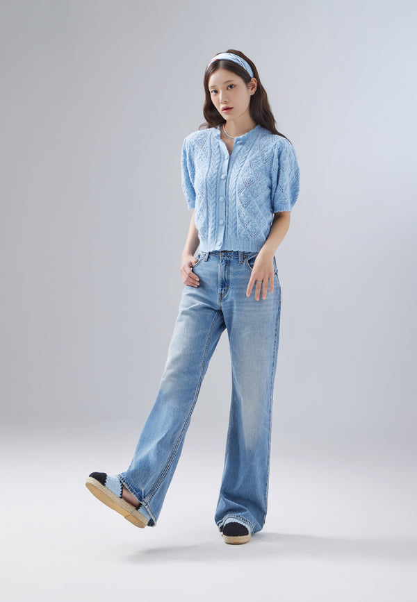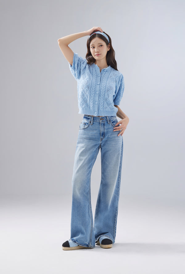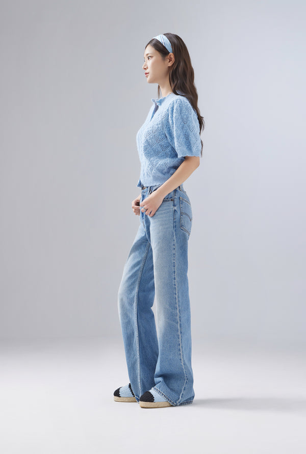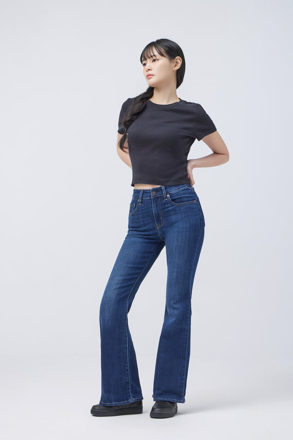 힙과 허벅지는 자연스럽게 핏되고, 종아리부터 발목까지 점점 퍼지는 실루엣입니다. 다리 라인을 길고 균형 있게 보이도록 도와주며, 세련된 실루엣을 완성합니다.
