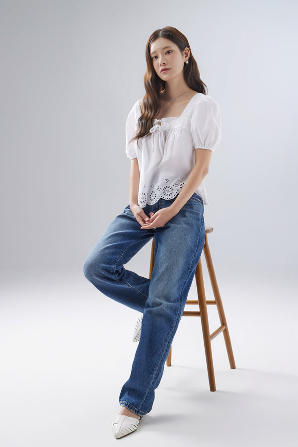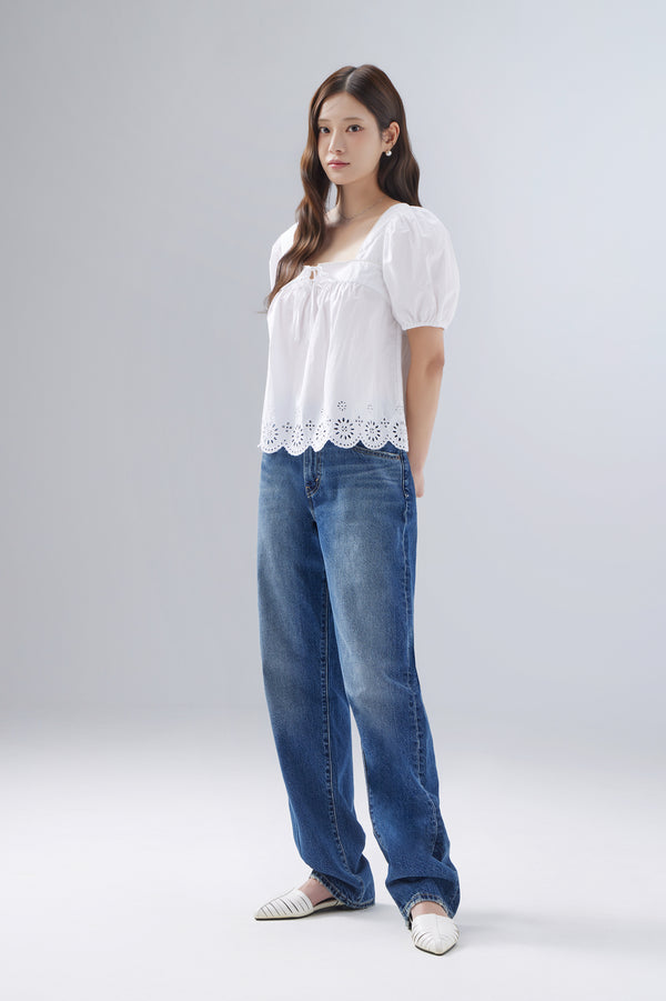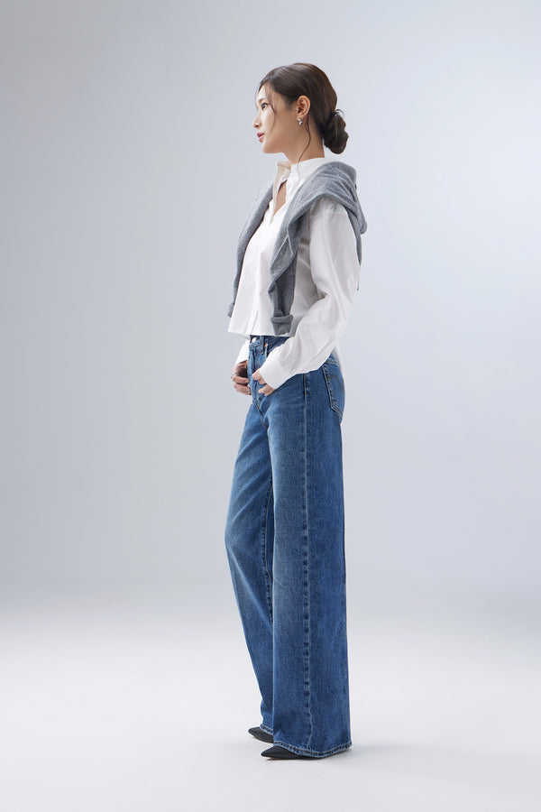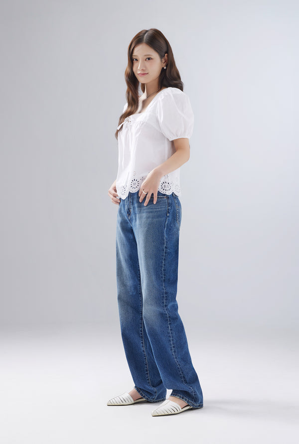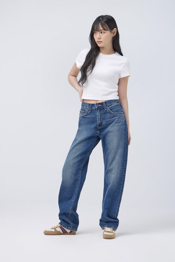 0039B하이 라이즈와 와이드 핏의 레그 라인으로 다리가 길어보이며, 신축성을 더해 편안한 착용감의 728 와이드 진입니다.