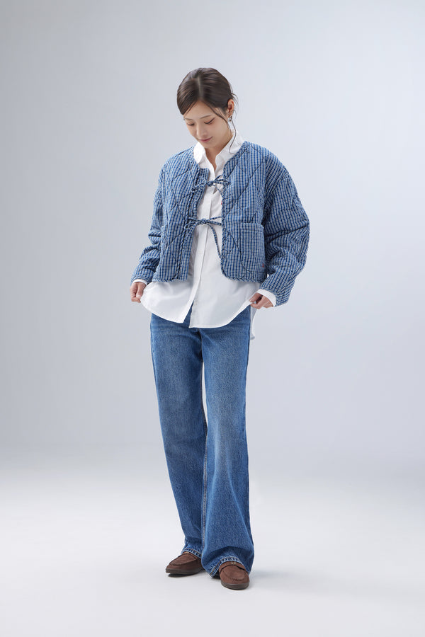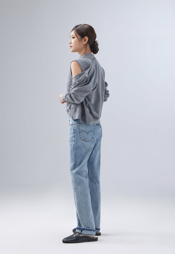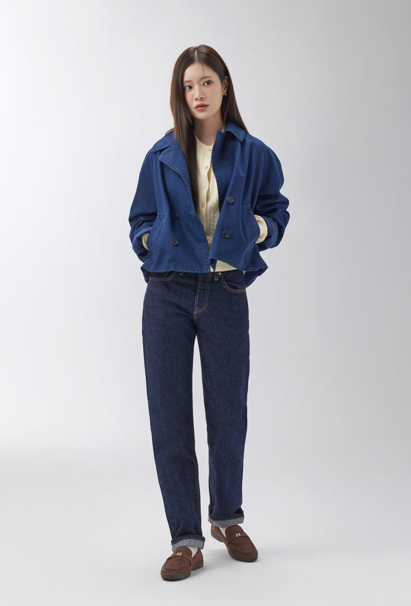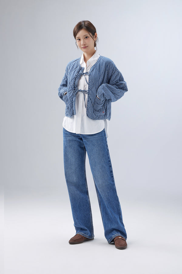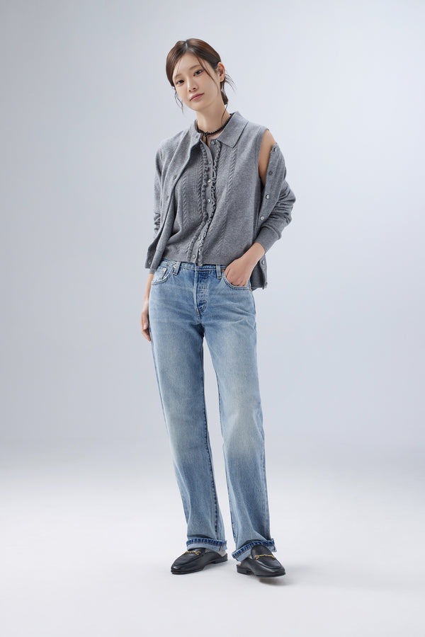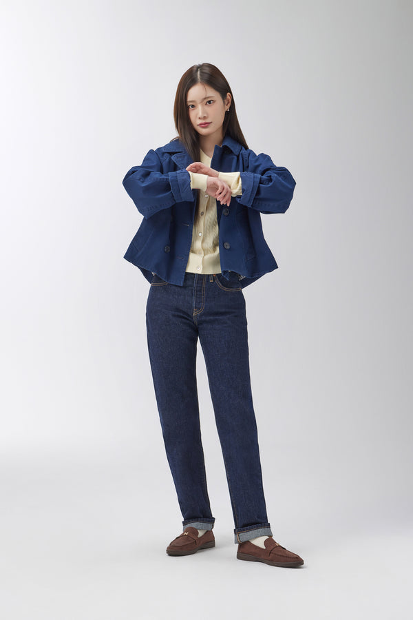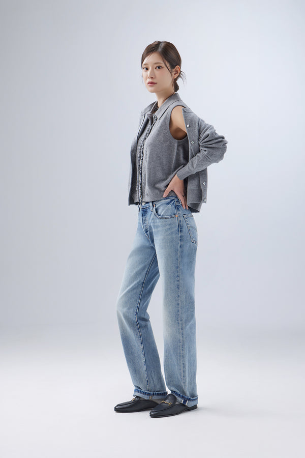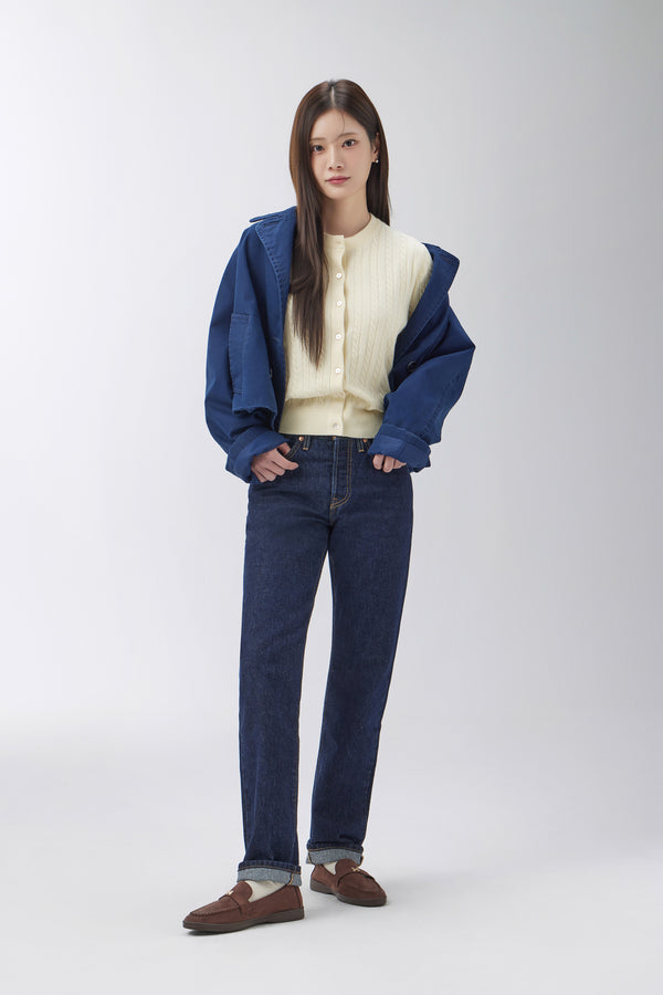 허벅지부터 밑단까지 일정한 폭 체형에 구애받지 않는 균형잡힌 실루엣 타임리스 핏으로 클래식한 분위기 연출