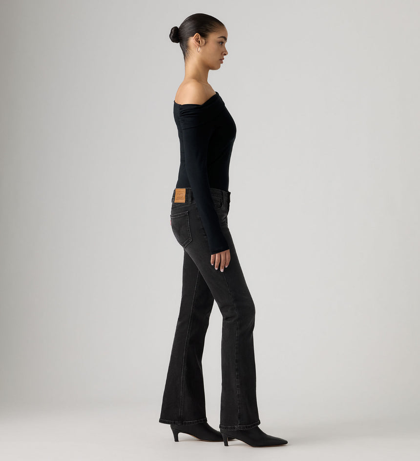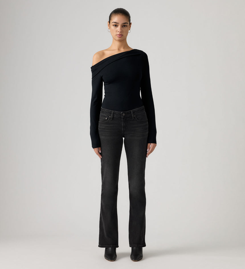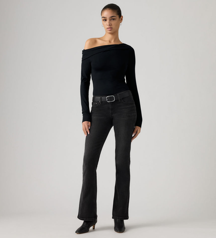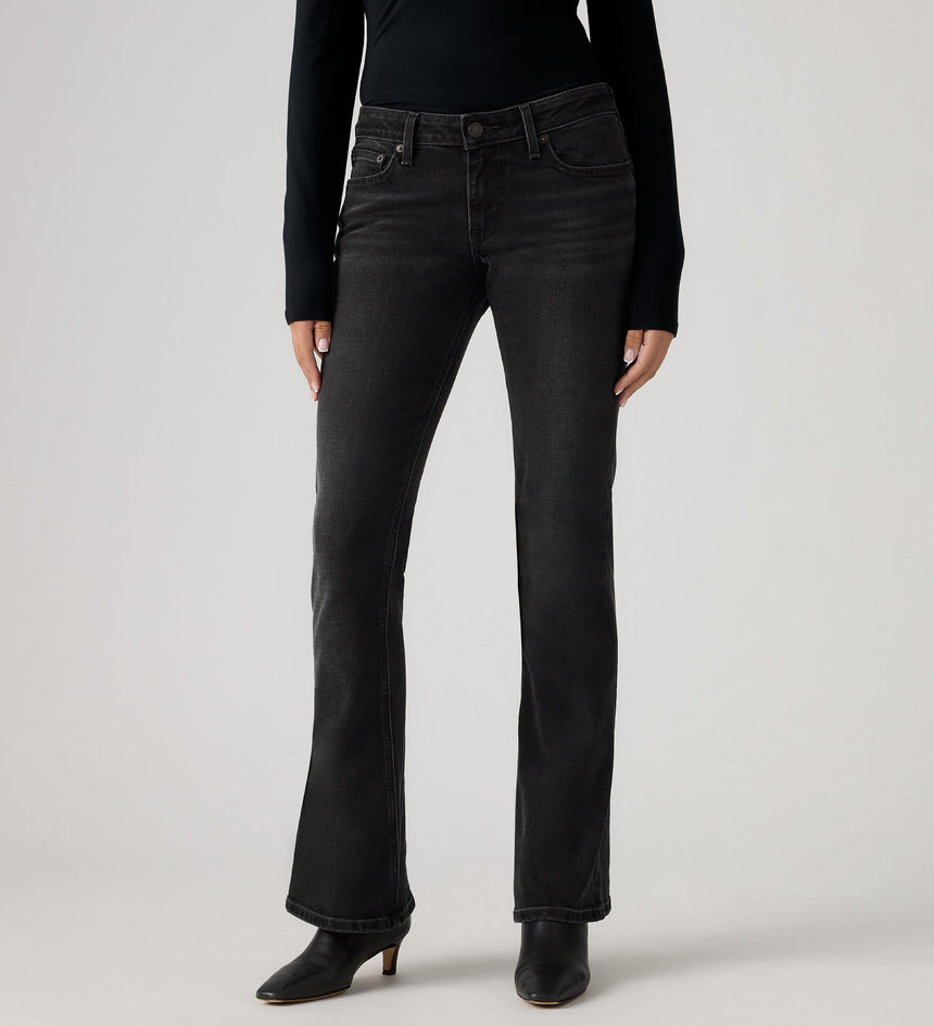 2000년대 초반 스타일을 재현한 로우라이즈와 슬림 부츠컷이 특징입니다.