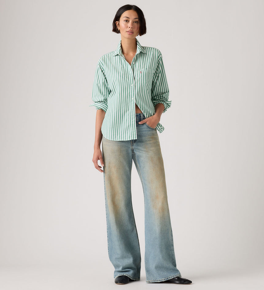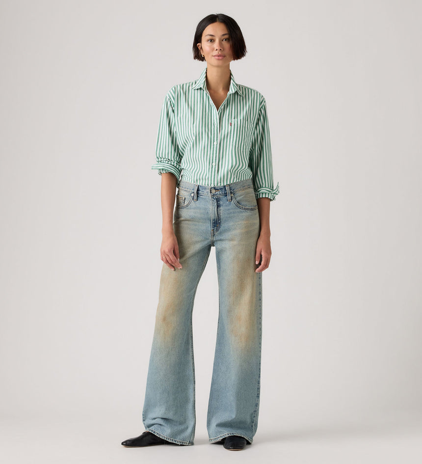 미드라이즈와 루즈한 핏으로 부츠컷 스타일을 현대적으로 풀어냈습니다.