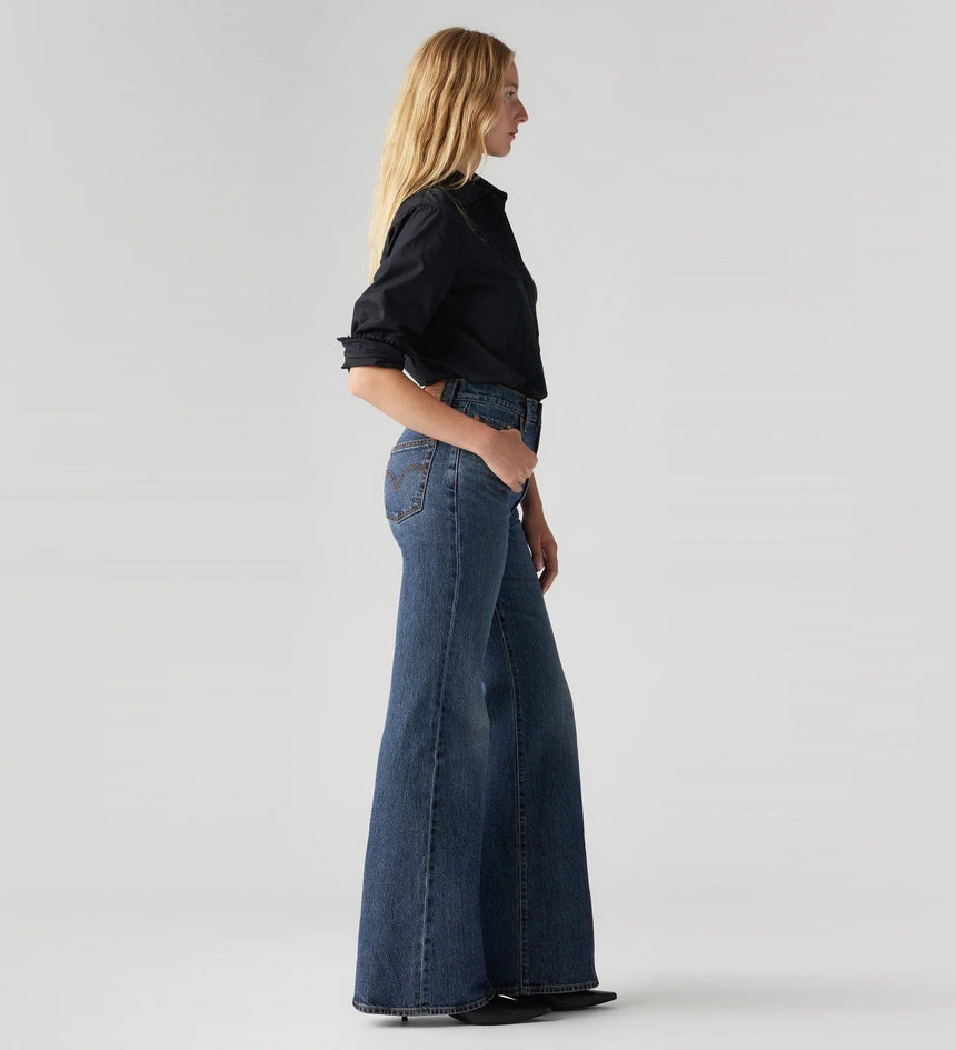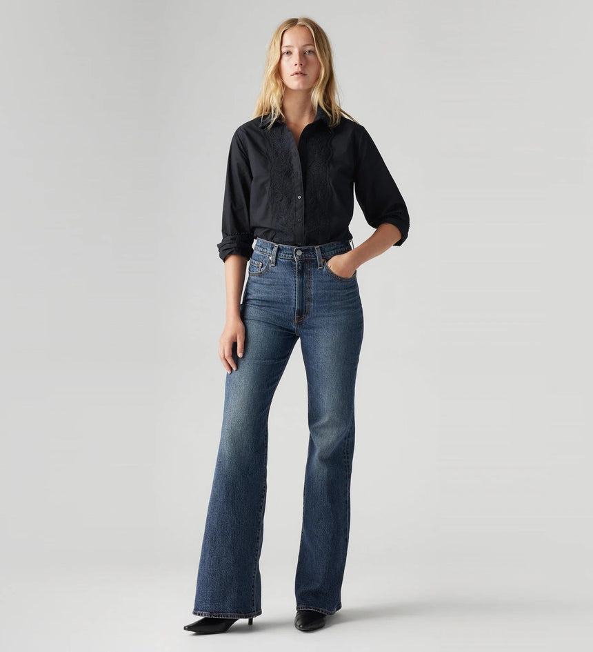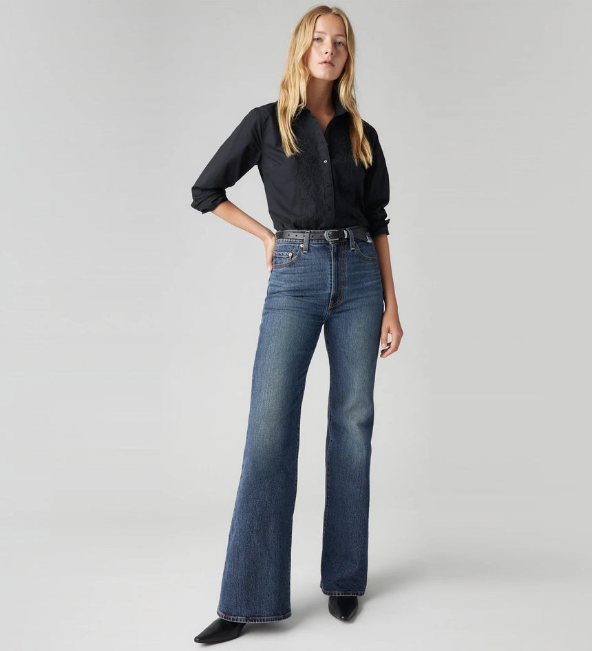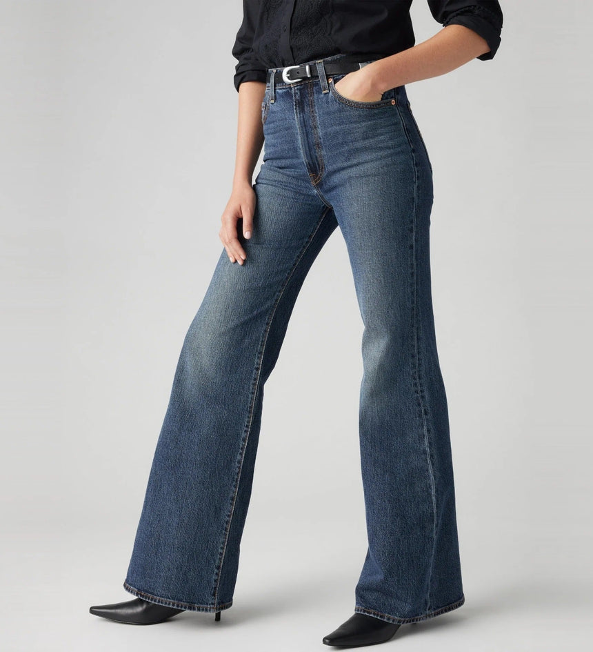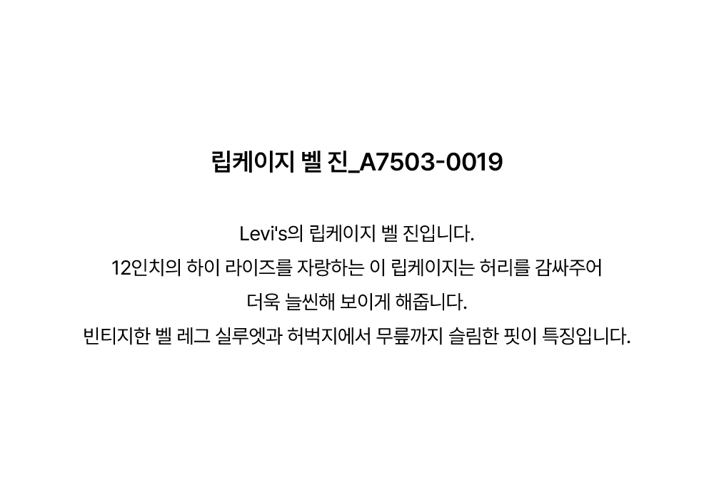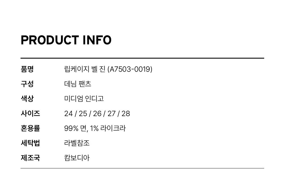 빈티지한 벨핏 실루엣과 허벅지에서 무릎까지 슬림한 핏이 특징입니다.