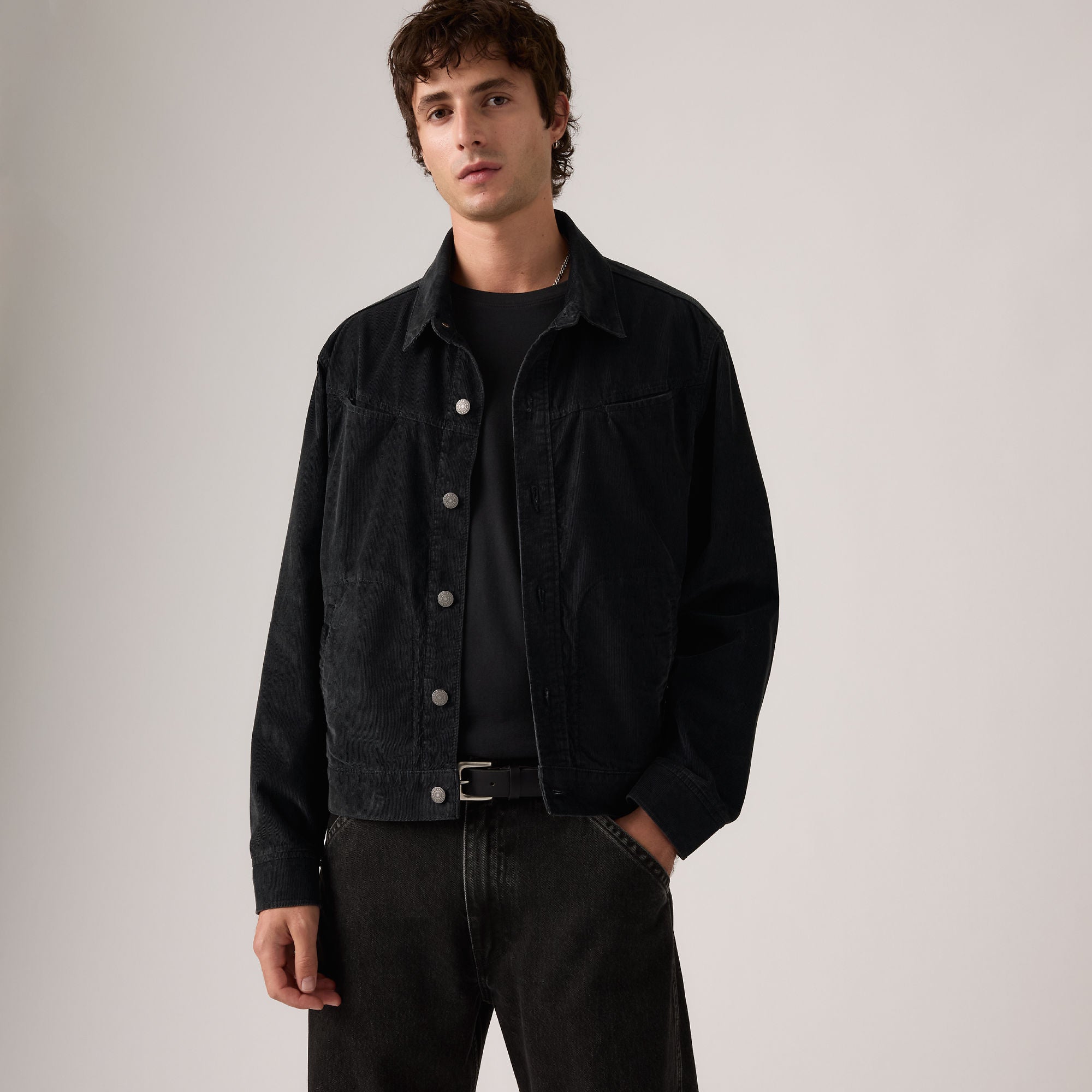 클래식 트러커 자켓을 릴렉스핏과 약간의 크롭 기장으로 새롭게 디자인했습니다.