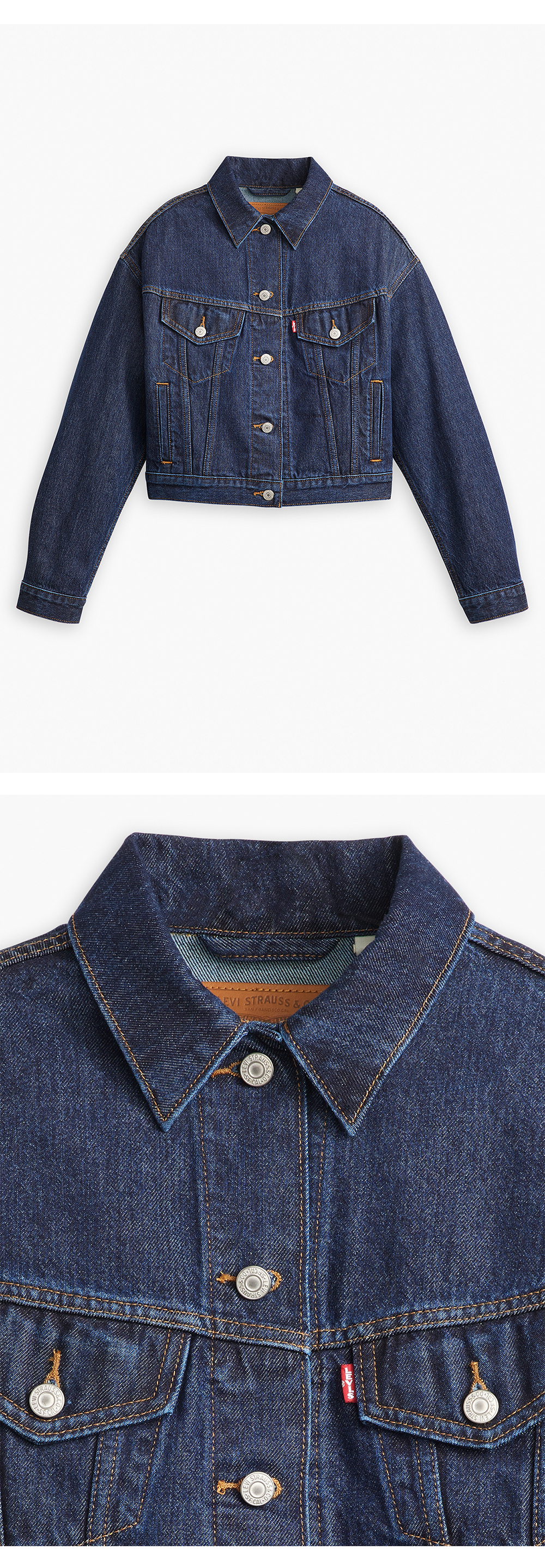 90년대의 빈티지함과 두 개의 플랩 포켓이 특징이며 크롭하고 편안한 핏이 매력적입니다.