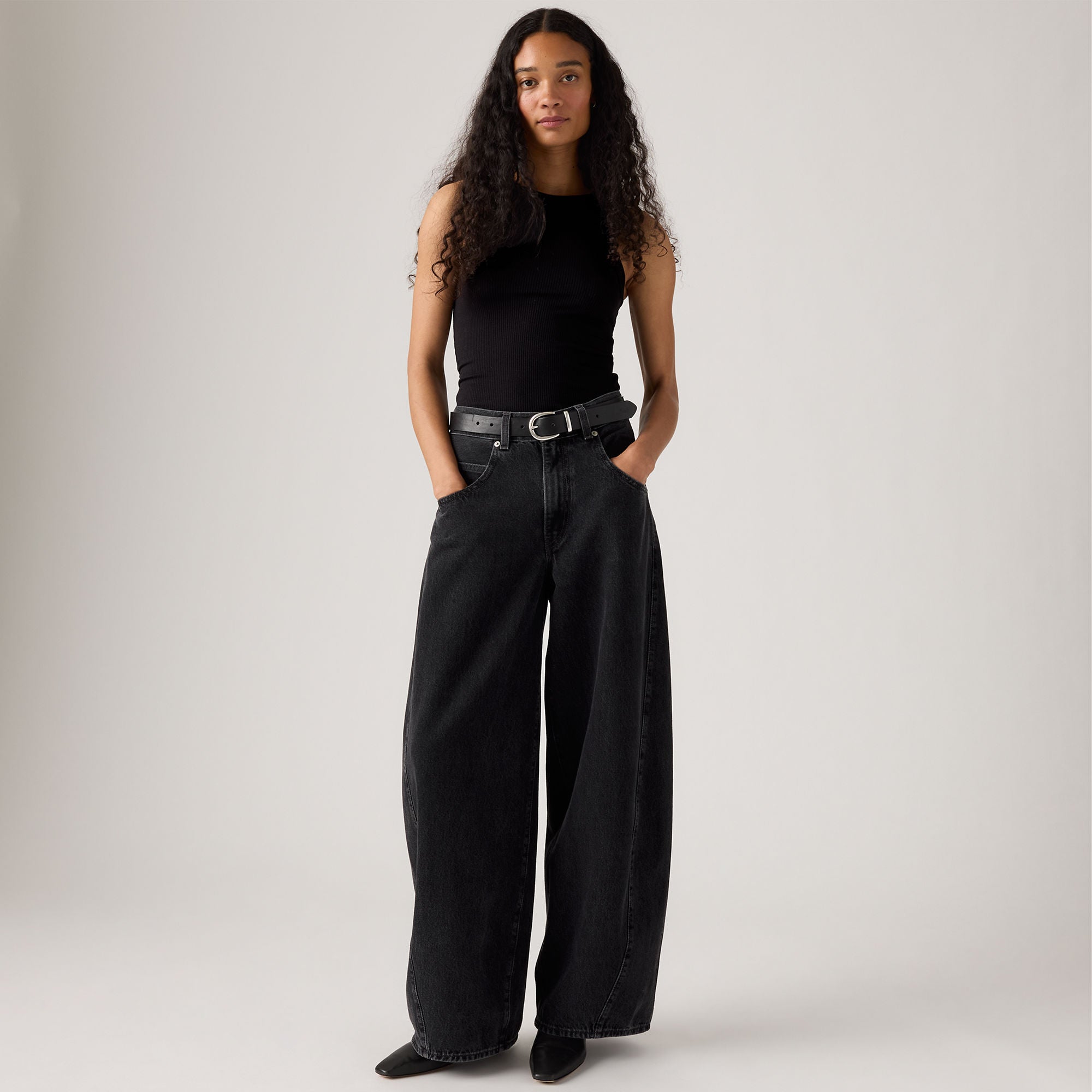 슈퍼 배기 배럴 진은 여유 있는 미드라이즈와 넉넉한 곡선 레그 컷 그리고 오버사이즈 핏으로 힘을 들이지 않아도 멋스러운 핏이 완성됩니다.