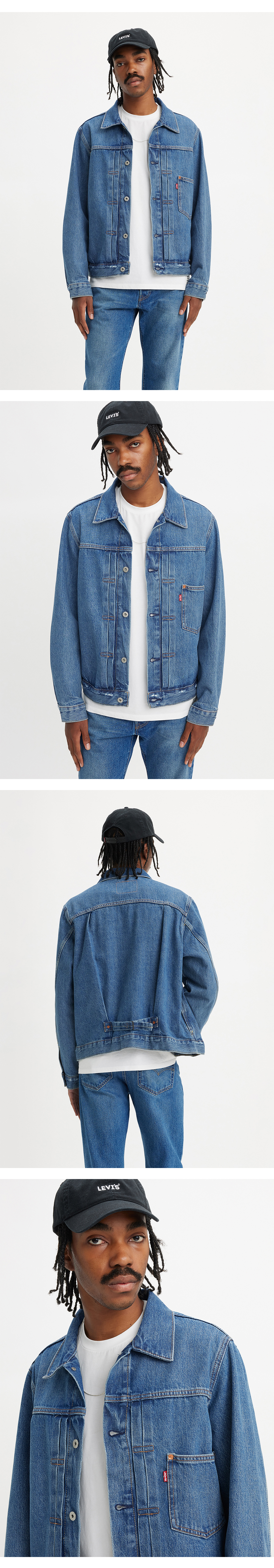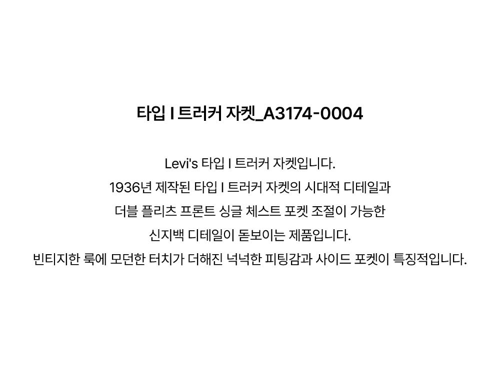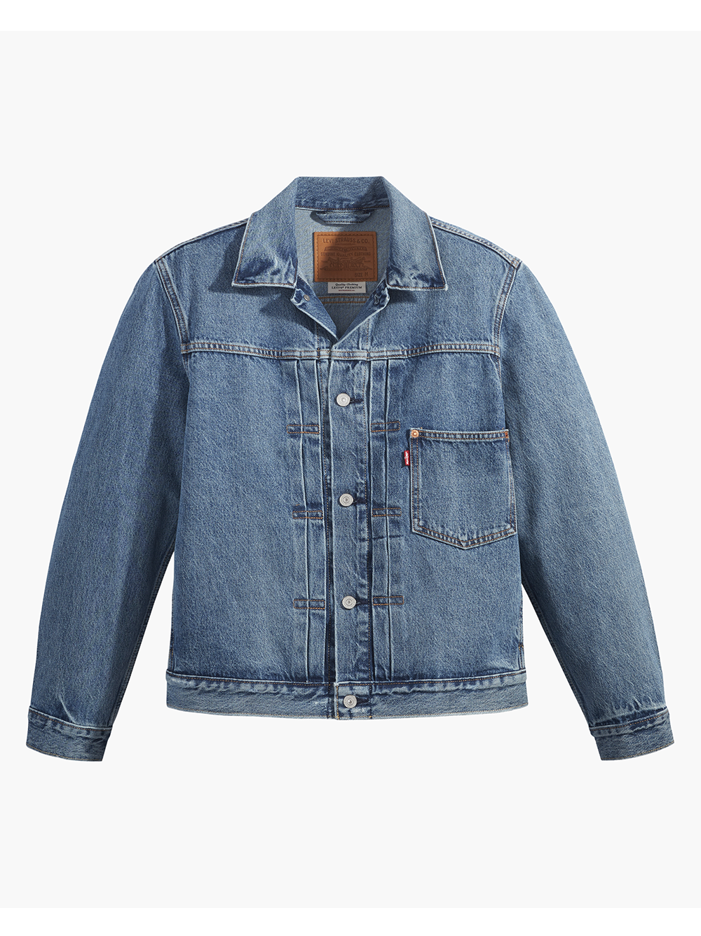1936년 제작된 타입 I 트러커 자켓의 시대적 디테일과 더블 플리츠 프론트, 싱글 가슴 포켓, 조절이 가능한 신지백 디테일이 돋보이는 제품입니다.
