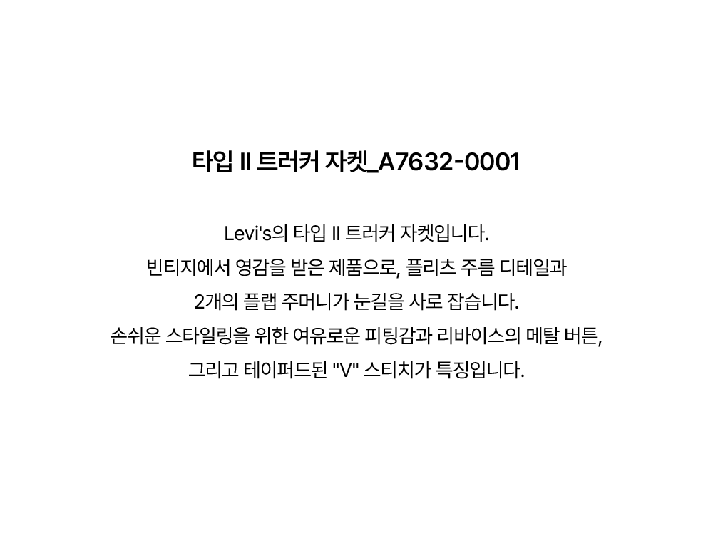 손쉬운 스타일링을 위한 여유로운 핏과 리바이스의 메탈 버튼, 그리고 테이퍼드된스티치가 특징입니다.