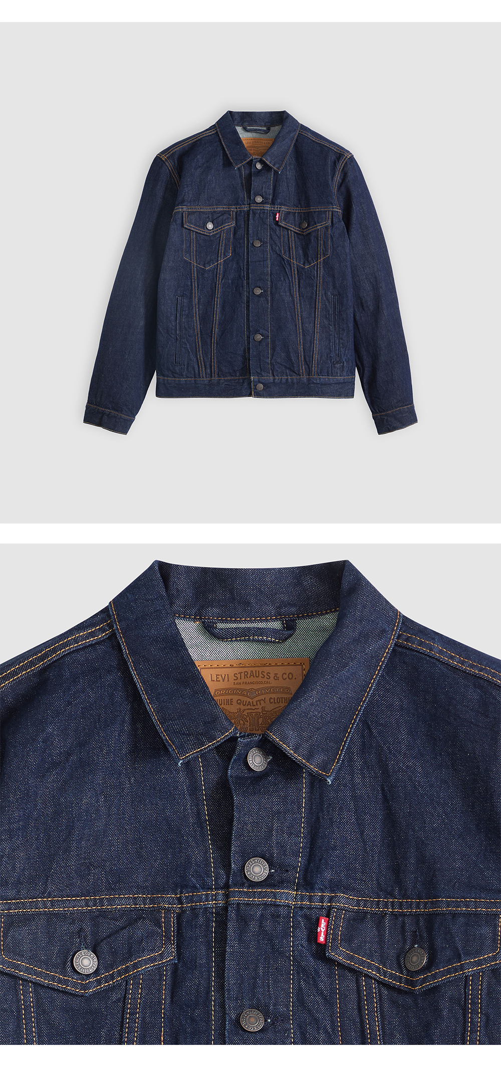 1967년 데님 자켓의 원형으로 리바이스 메탈 버튼과 테이퍼드 V 스티치가 특징입니다.