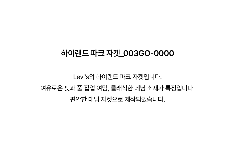 여유로운 핏과 풀 집업 여밈 클래식한 데님 소재가 특징입니다.