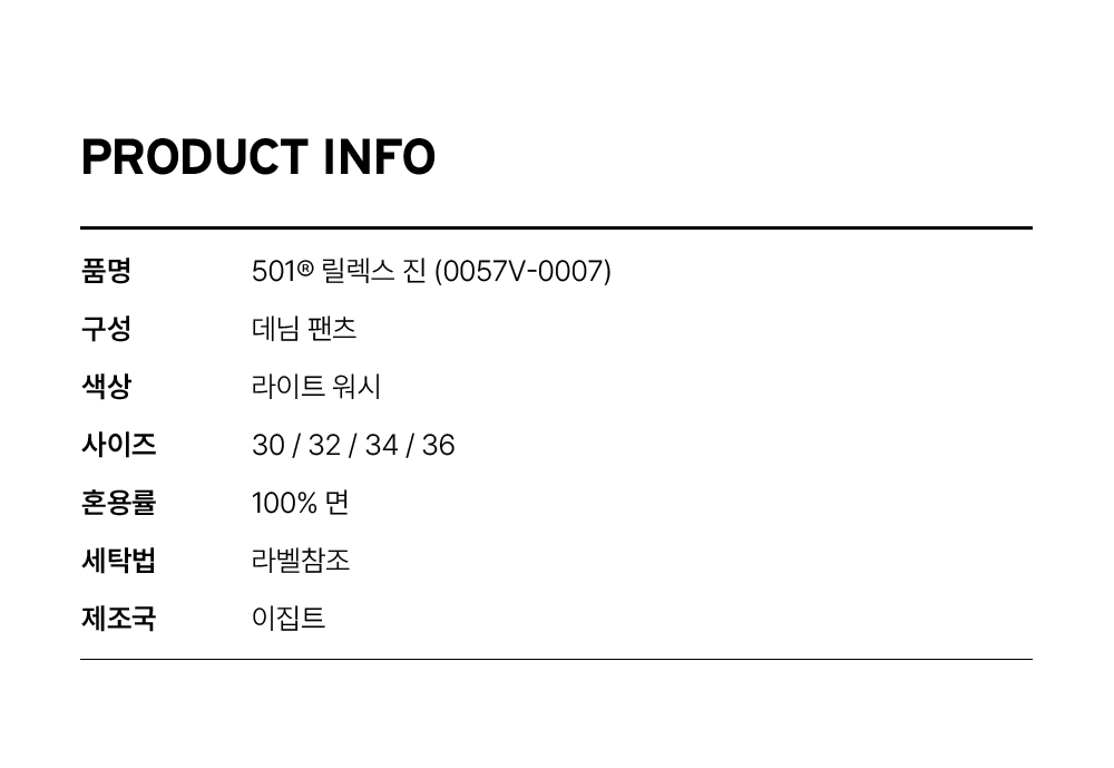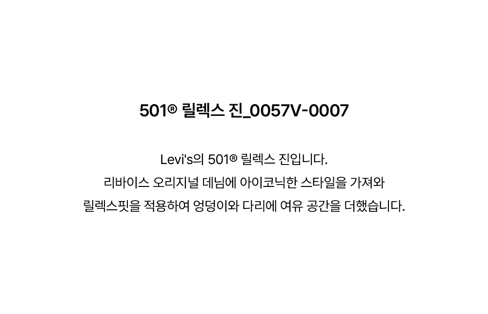 가장 상징적인 501® 스타일을 한층 여유롭게 풀어낸 디자인입니다.