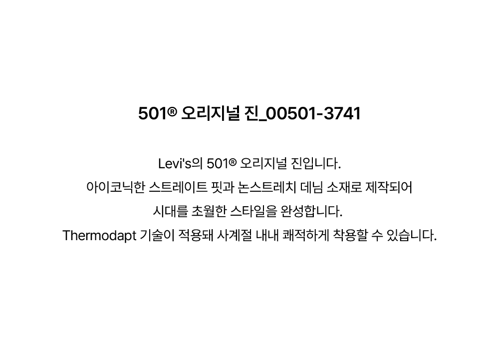 아이코닉한 스트레이트 핏과 논스트레치 데님 소재로 제작되어 시대를 초월한 스타일을 완성합니다.