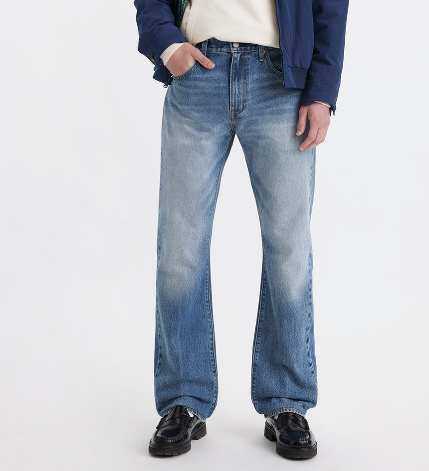 허리 라인에 맞게 재단되었고, 어센틱한 부츠컷 실루엣이 특징인 제품입니다.