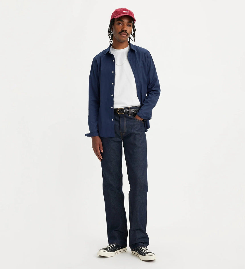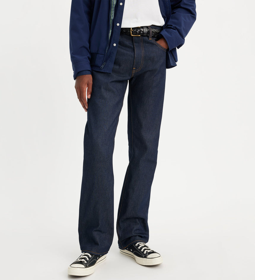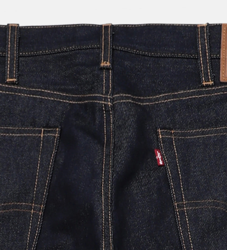 허리 라인에 맞게 재단되었고, 어센틱한 부츠컷 실루엣이 특징인 제품입니다.