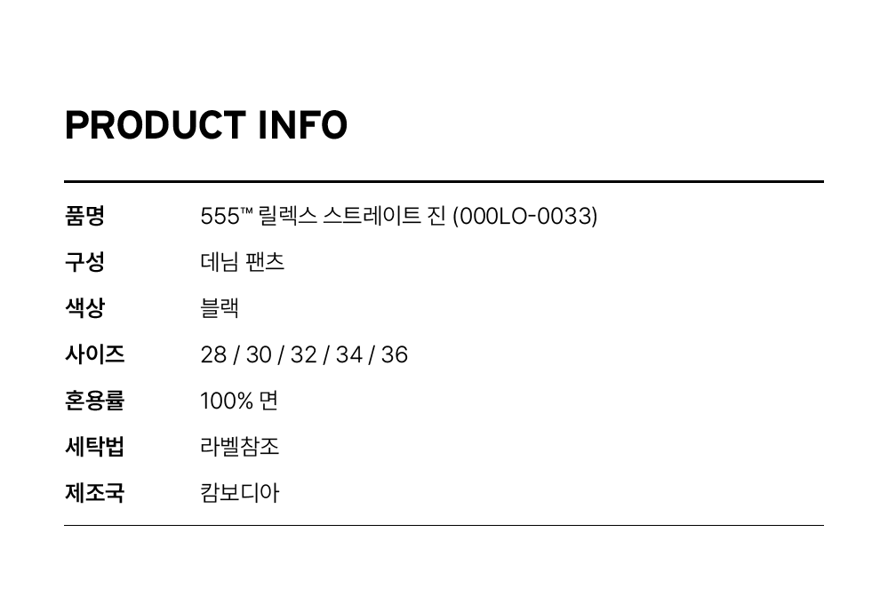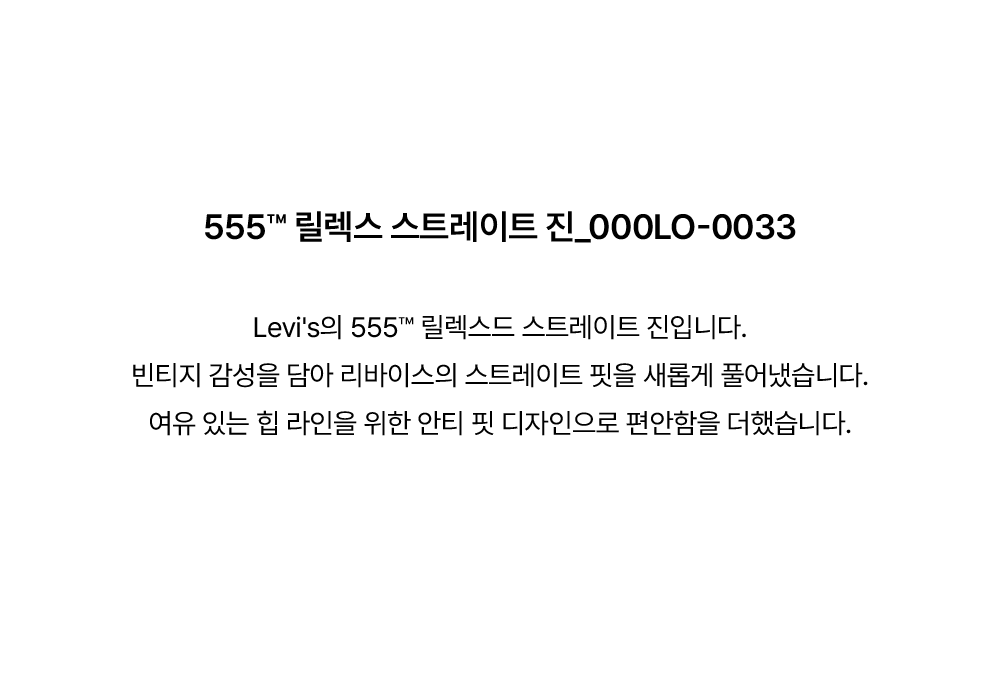 빈티지 감성을 담아 리바이스의 스트레이트 핏을 새롭게 풀어냈습니다.