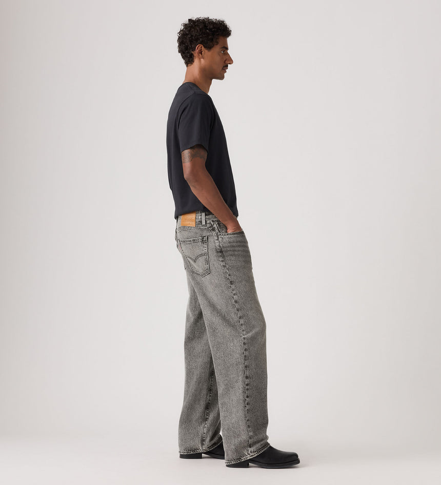 90년대 스타일을 재현하여 허리부터 발목까지 루즈하게 떨어지는 배기핏입니다.