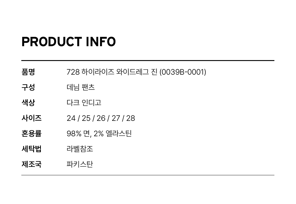 빈티지 스트레치 원단을 사용해 클래식한 데님 느낌과 편안함을 모두 갖췄습니다.