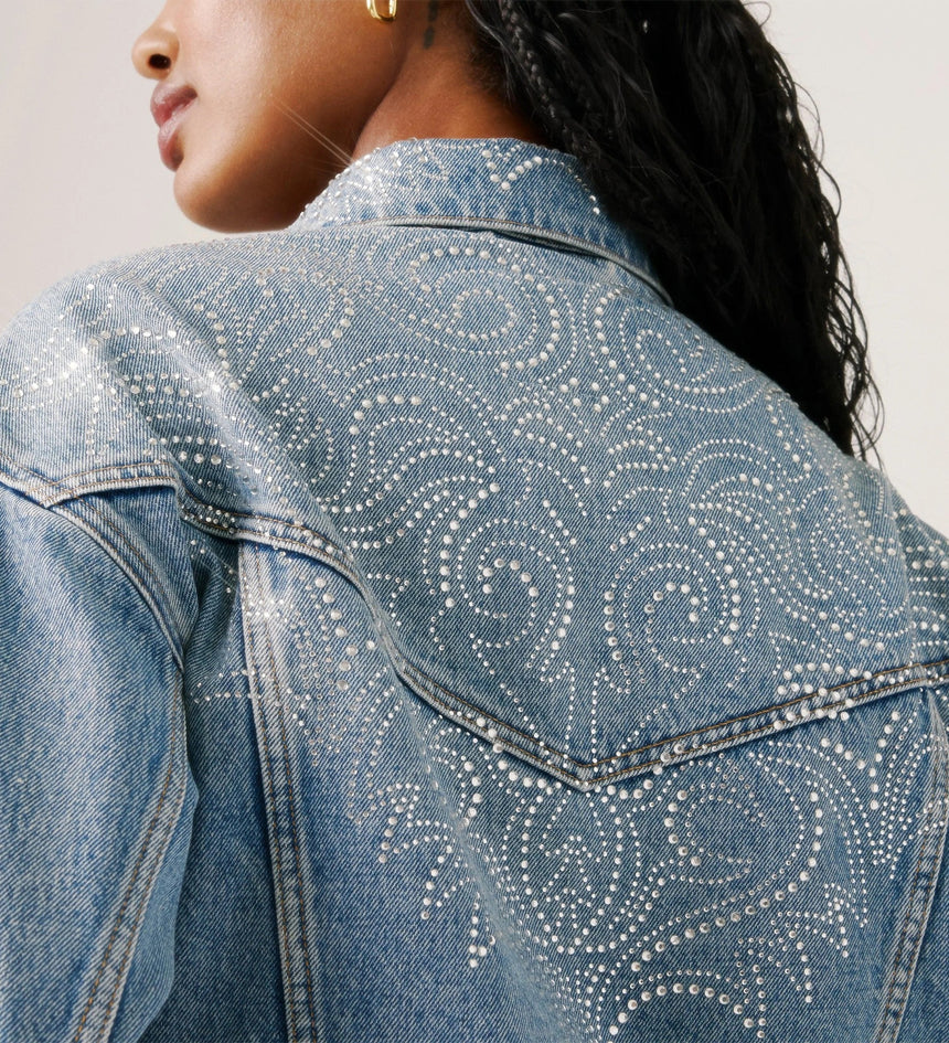 소매와 등판에는 페이즐리 디자인이 더해졌으며 시간이 지날수록 멋스럽게 몸에 맞춰집니다.