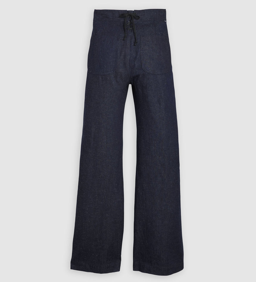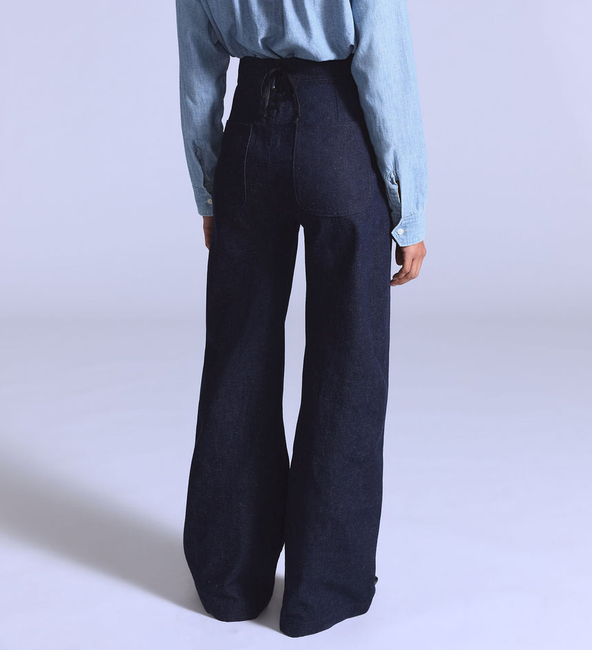 와이드 레그 실루엣에 하이라이즈로 디자인 되었고, 뒷면에는 레이스업 디테일이 더해졌습니다.