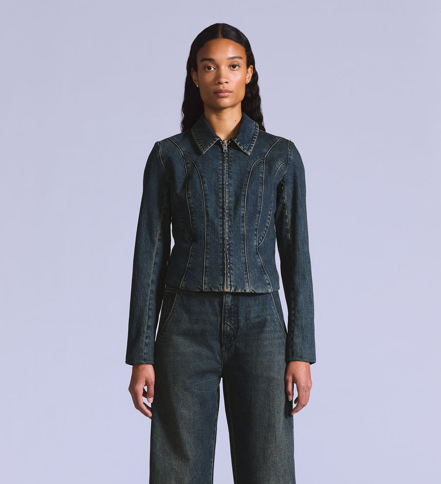 슬림핏으로 제작되었으며, 솔기 디테일과 지퍼 여밈 디자인이 특징입니다. 일본산 프리미엄 데님 원단으로 제작되었습니다.