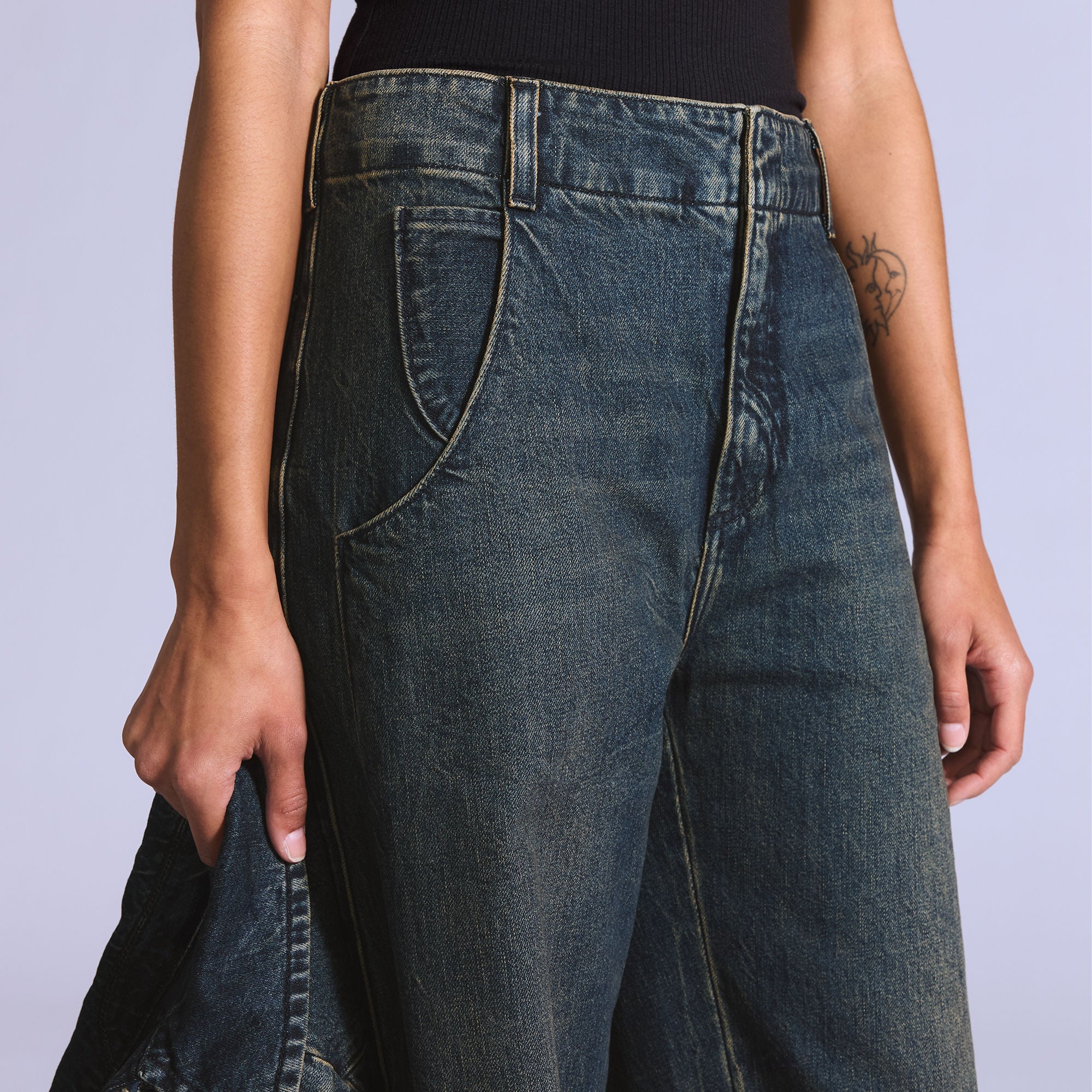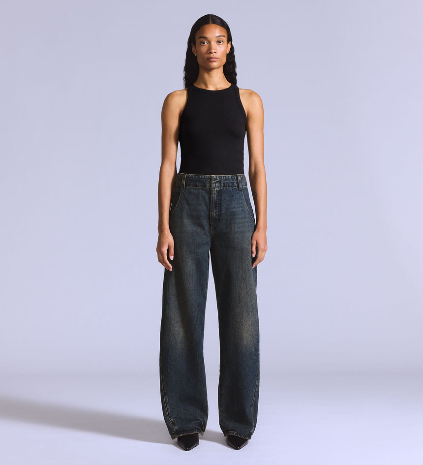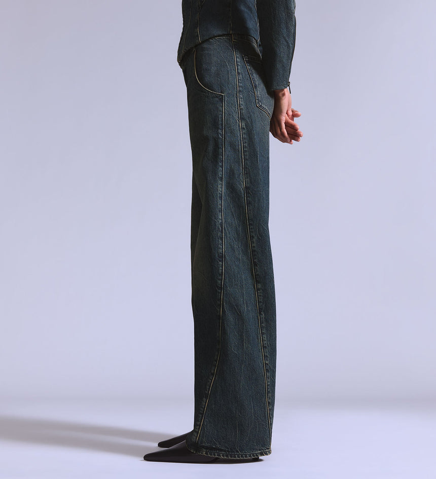 배럴 레그 실루엣에 미드라이즈로 디자인 되었으며, 일본산 프리미엄 데님 원단으로 제작되었습니다.