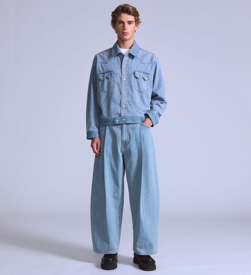 Levi's의 BLUETAB™ 와이드레그 플리츠 크롭 진 입니다.
