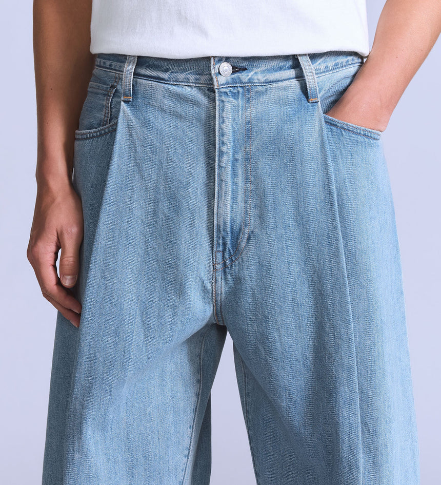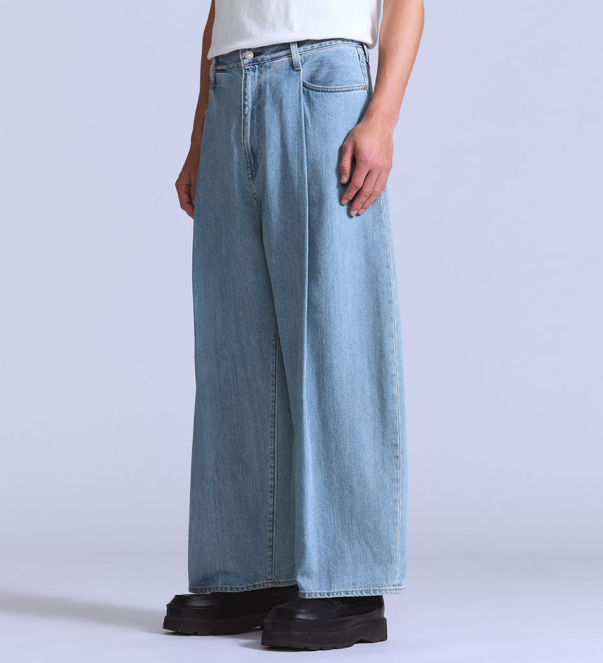 전면의 플리츠 디테일과 와이드한 핏이 어우러져 세련된 실루엣을 만듭니다.