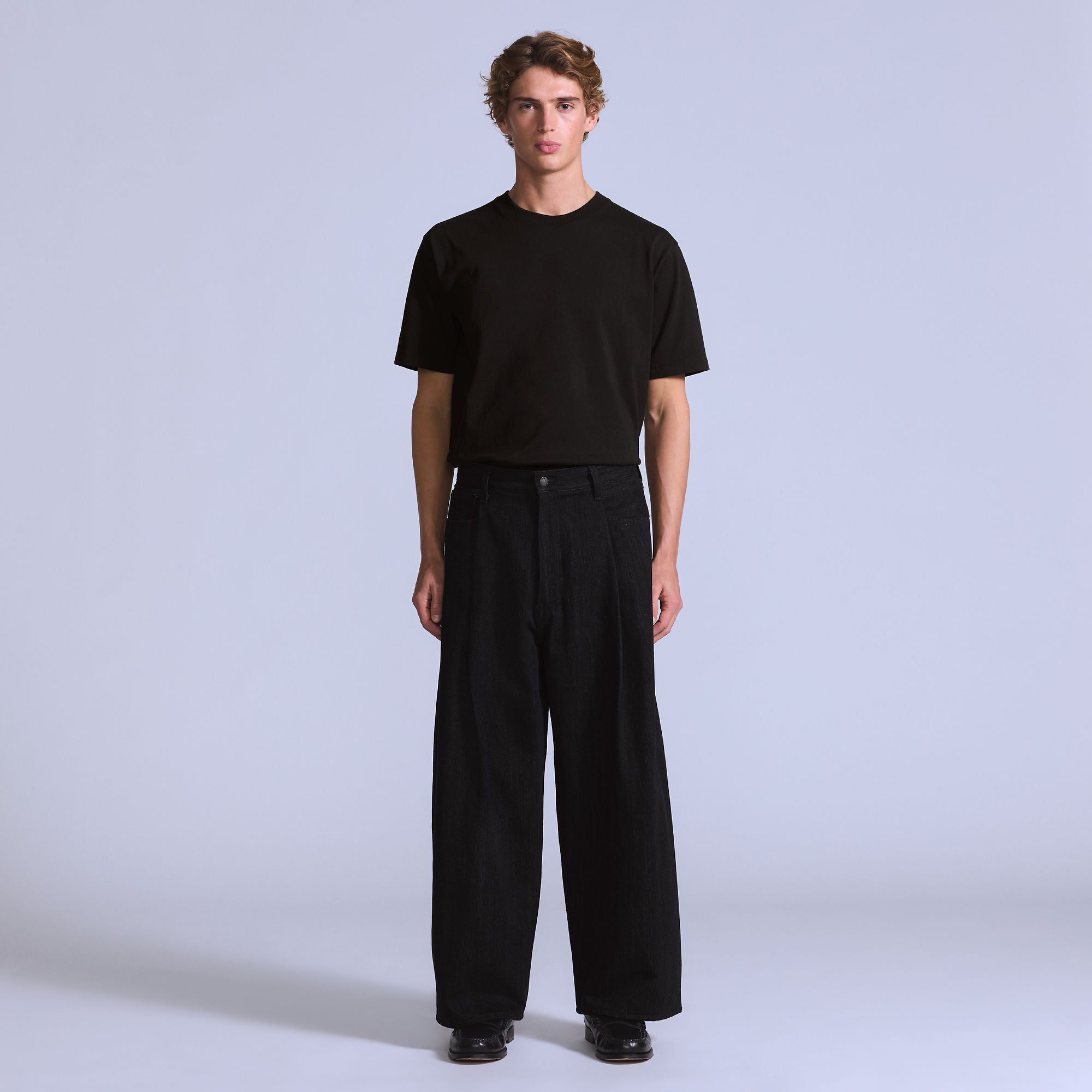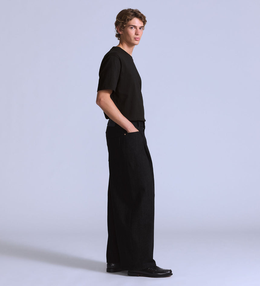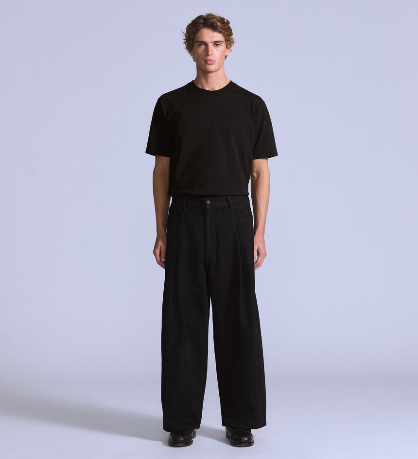 전면의 플리츠 디테일과 와이드한 핏이 어우러져 세련된 실루엣을 만듭니다.