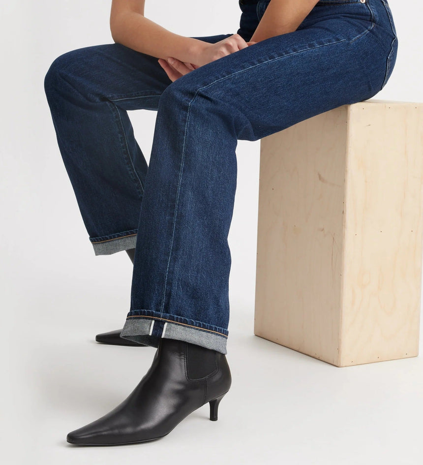 스트레이트핏컷이 돋보이며 전통적인 좁은 폭의 셔틀 베틀로 직조되어 내구성이 뛰어난 제품입니다.