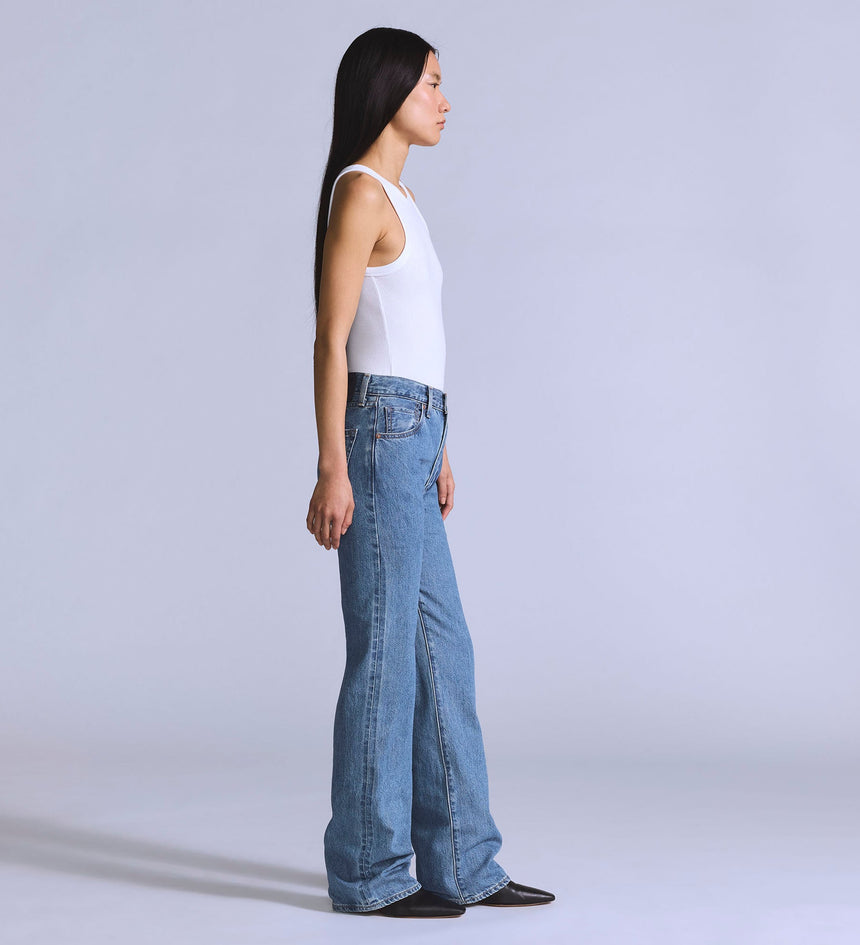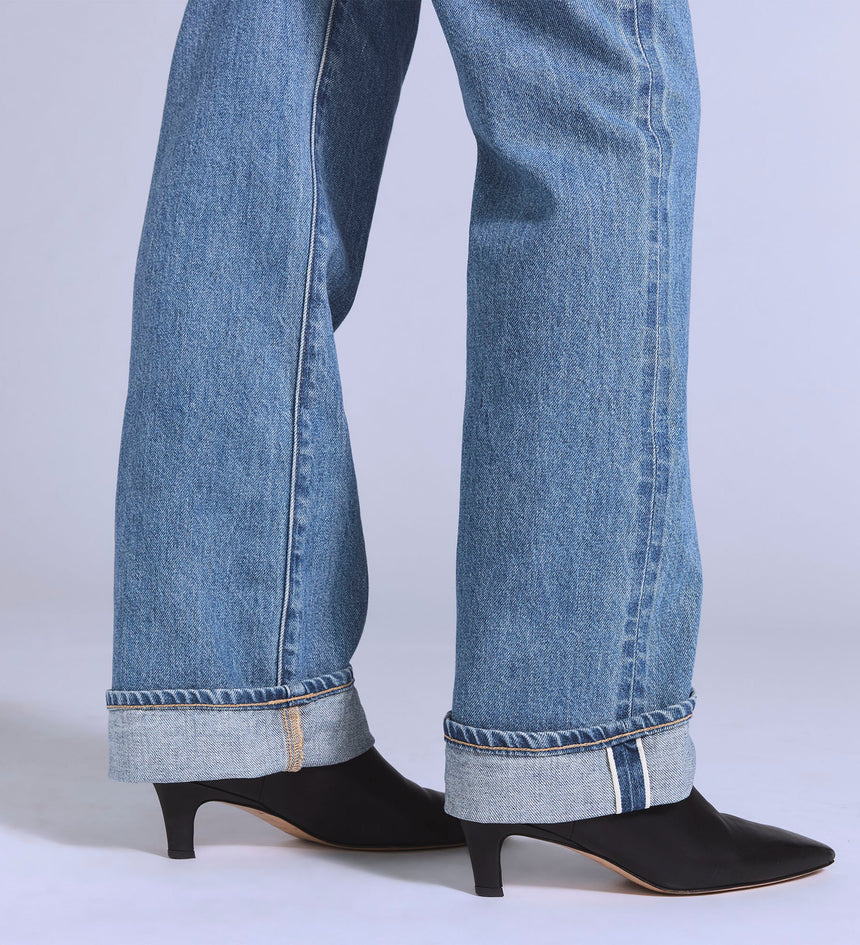 매력적인 스트레이트핏과 높은 하이라이즈 디자인이 특징입니다. 일본 데님 원단으로 제작되어 고급스러움과 뛰어난 품질을 동시에 보여줍니다.