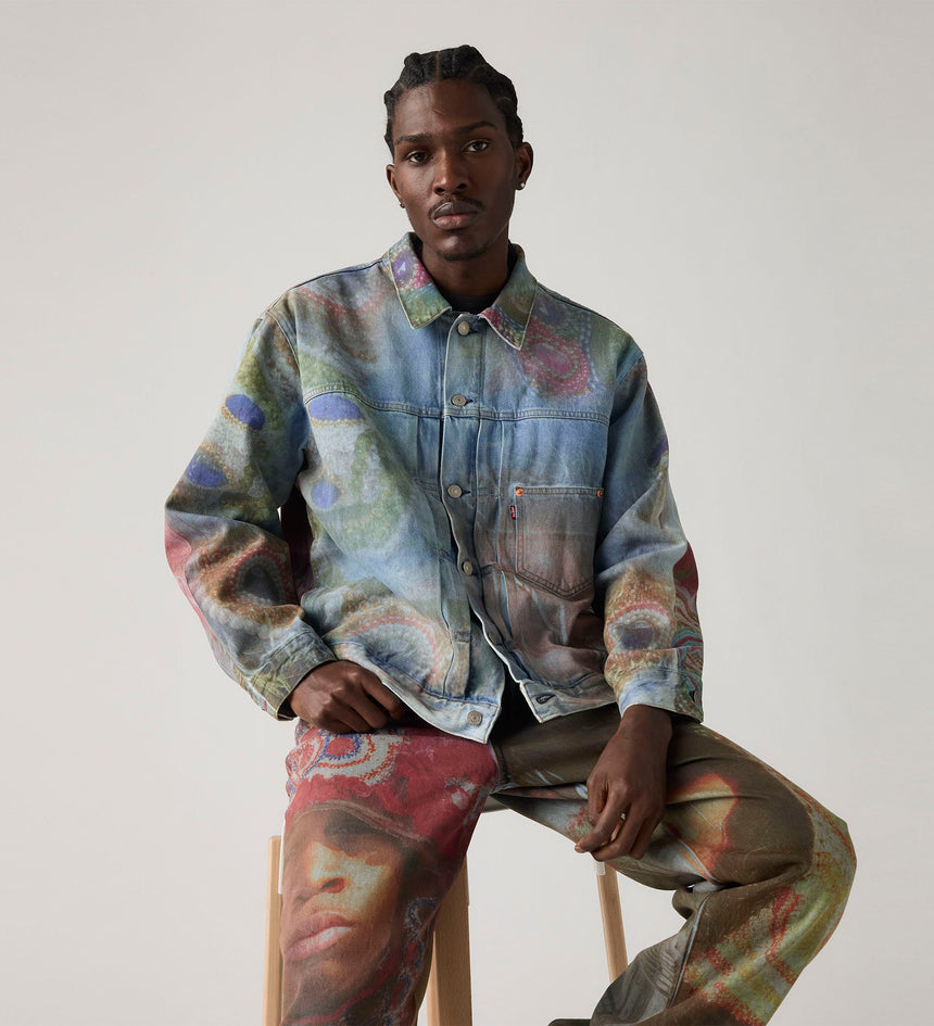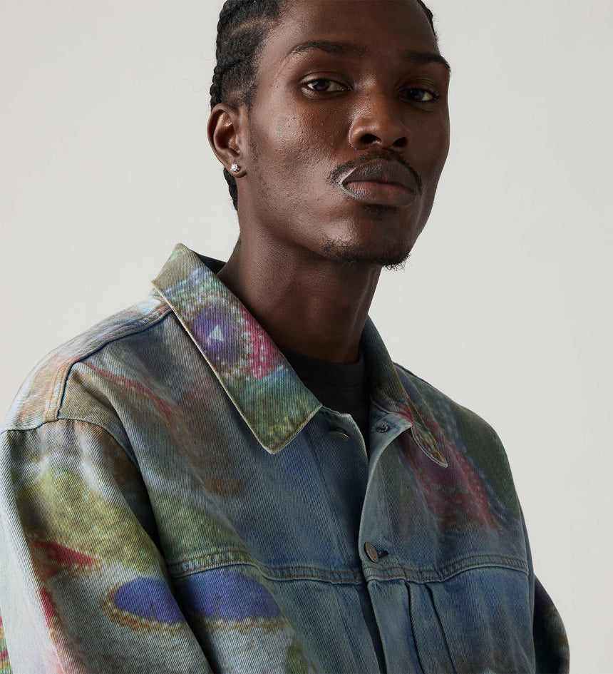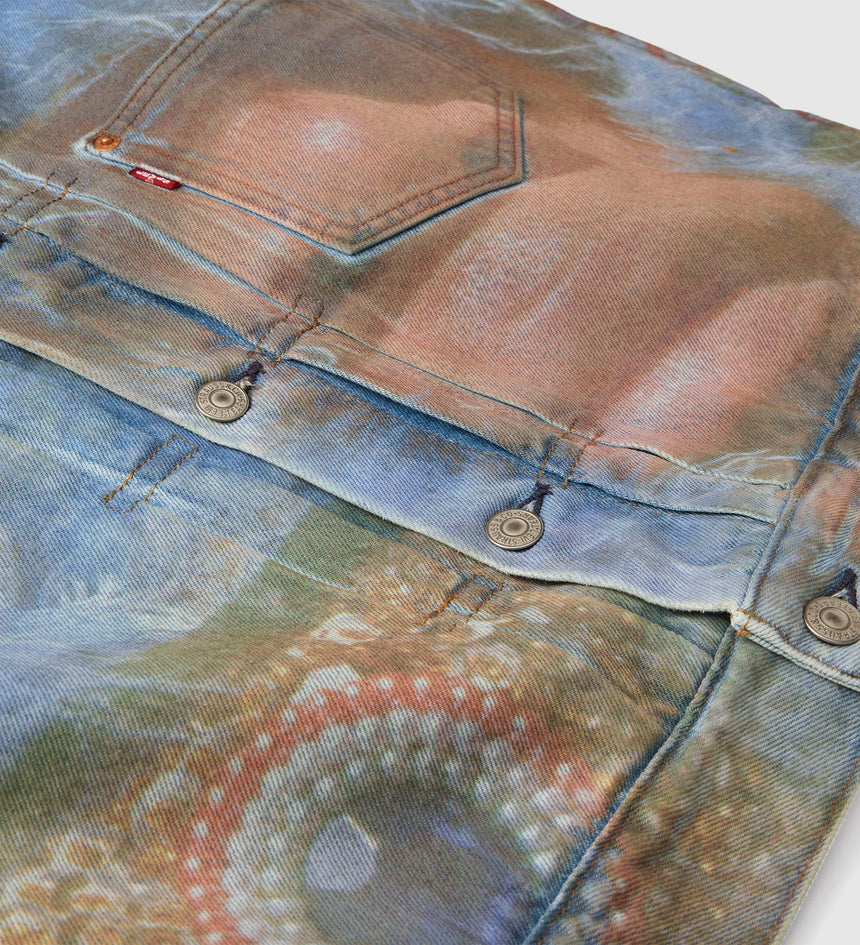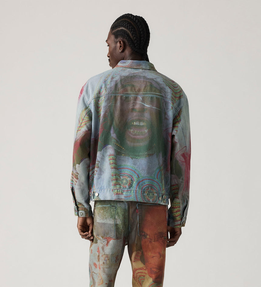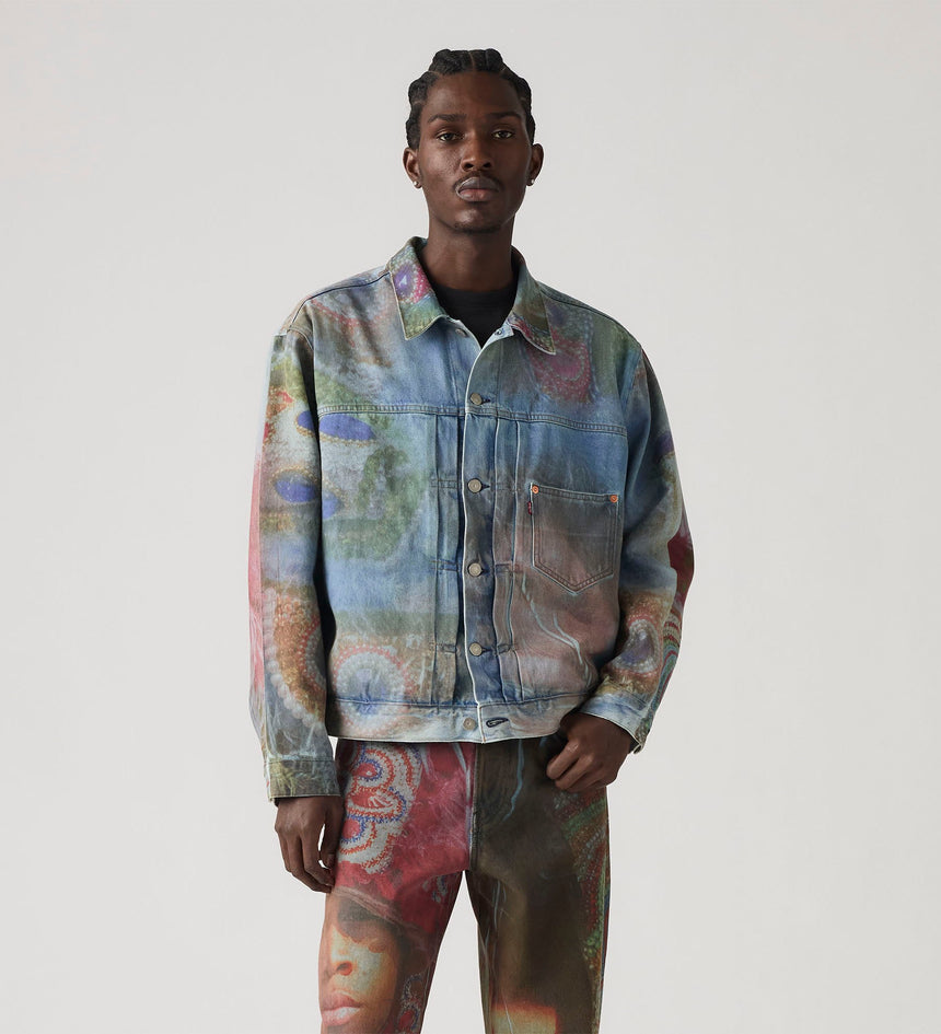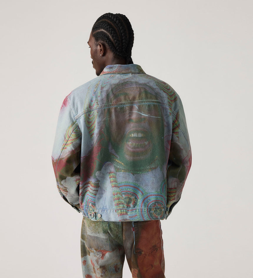 Levi's의 LEVI'S® x DENIM TEARS 포토 트러커 자켓입니다./ 아이코닉한 Type III 디자인에 여유로운 핏과 적당히 크롭된 실루엣을 적용하였습니다./ 전통적인 장인 정신과 문화적 의미를 담았고 스타일리시한 무드를 연출합니다./