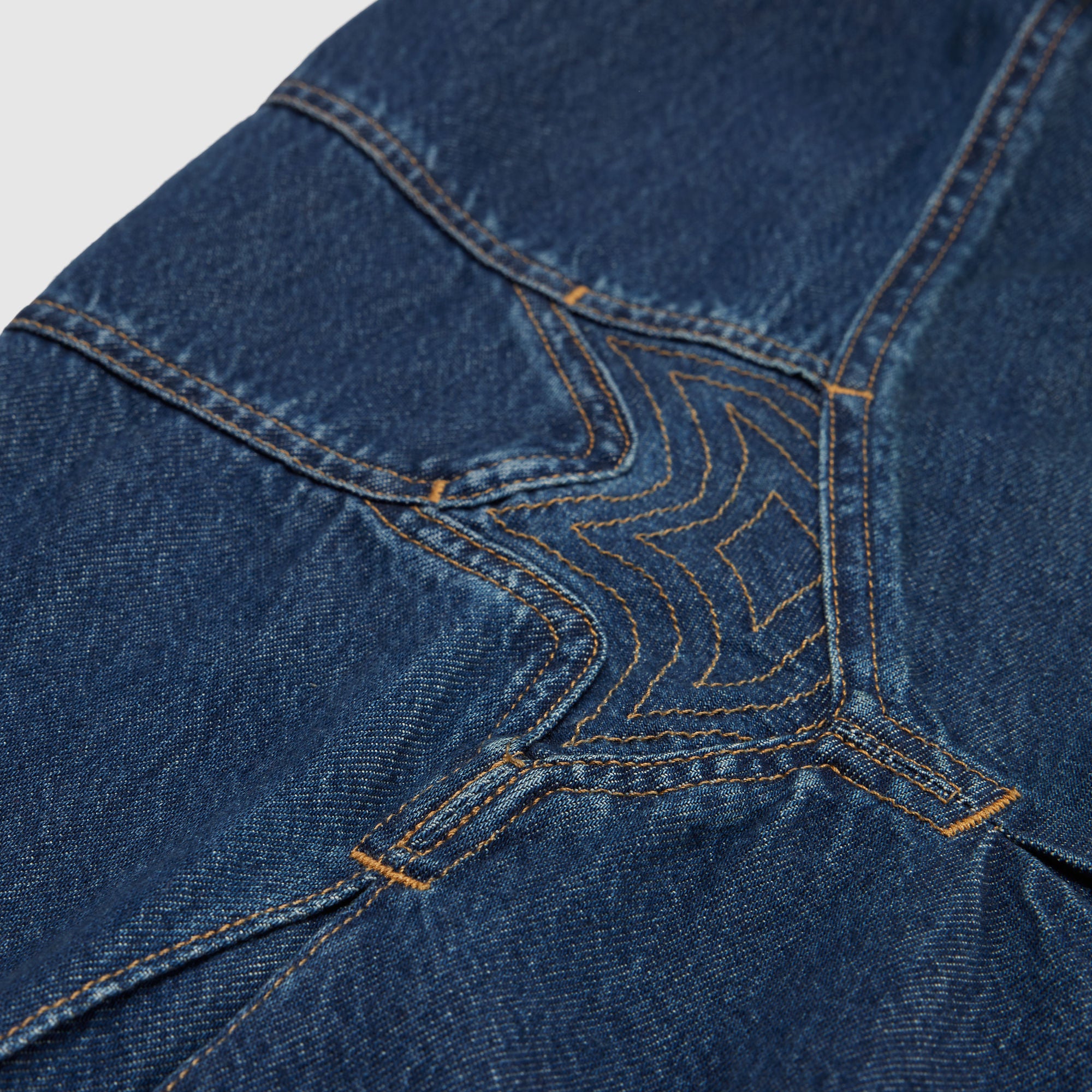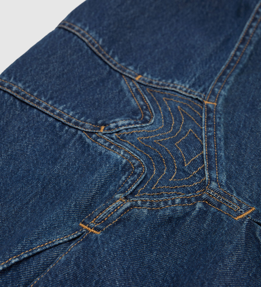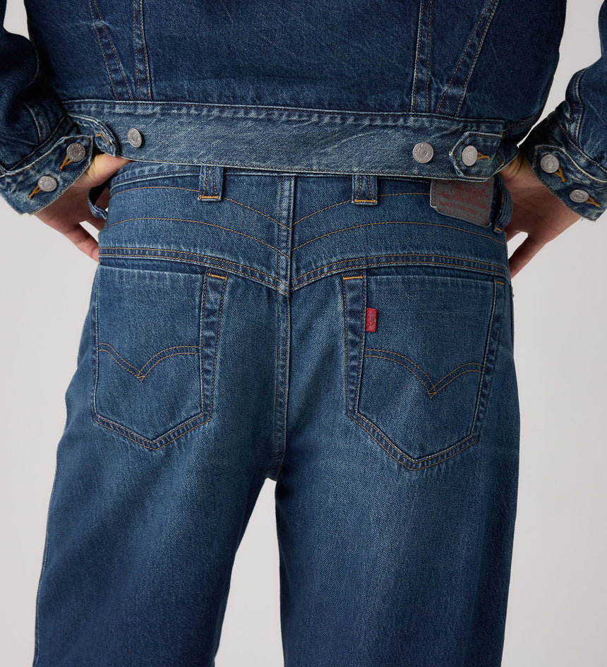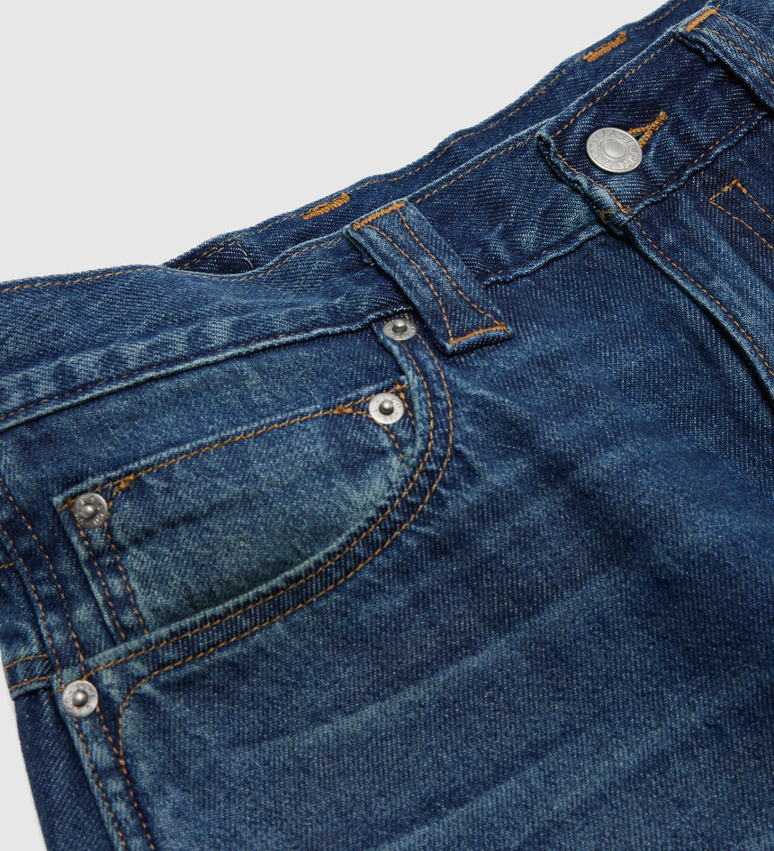 투톤 스티칭이 돋보이며 클래식 논스판 인디고 데님으로 만들어졌습니다.