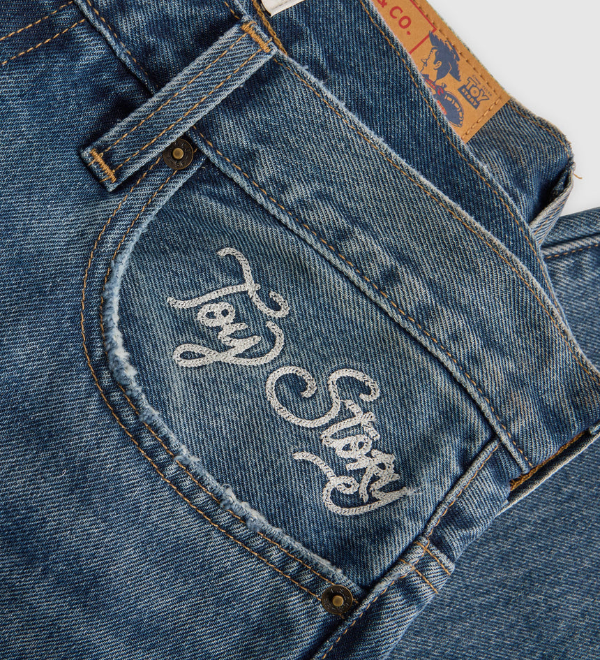 포켓에는 토이 스토리 체인스티치 자수가 더해지고 랜덤으로 캐릭터 패치가 부착됩니다.