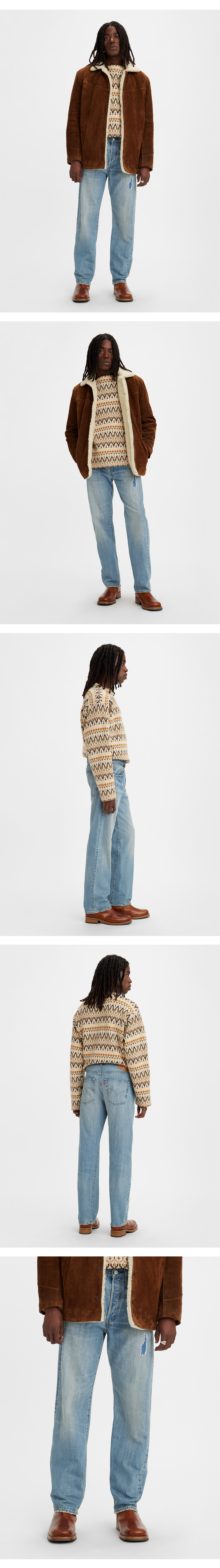 1947년 501은 제2차 세계대전 이후 시대를 반영한 새로운 세대를 위한 청바지입니다. 전쟁 이후 자재 공급이 다시 가능해지면서 오리지널의 특징을 재현하는 것도 가능하게 되었습니다. 이 시기에는 중산층의 많은 수요를 채우기 위해 대량 생산을 시작했습니다.