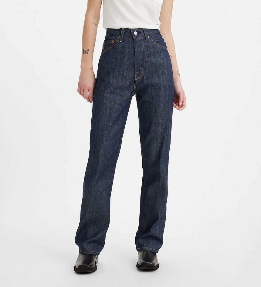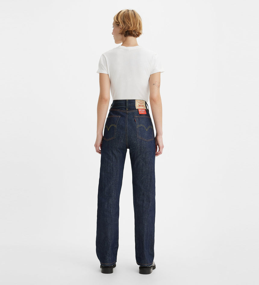 스페이드와 비슷한 모앙의 백포켓, 숨겨진 백포켓 리벳, 리바이스 레드 탭의 디자인을 갖춘 스트레이트진입니다.