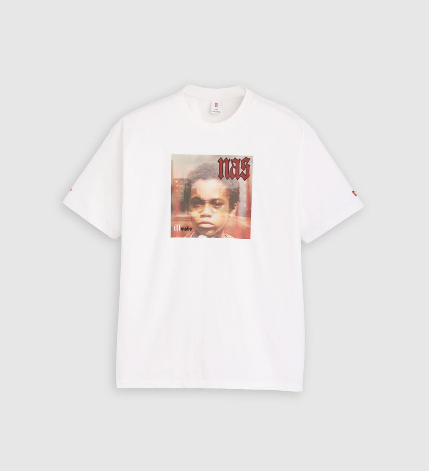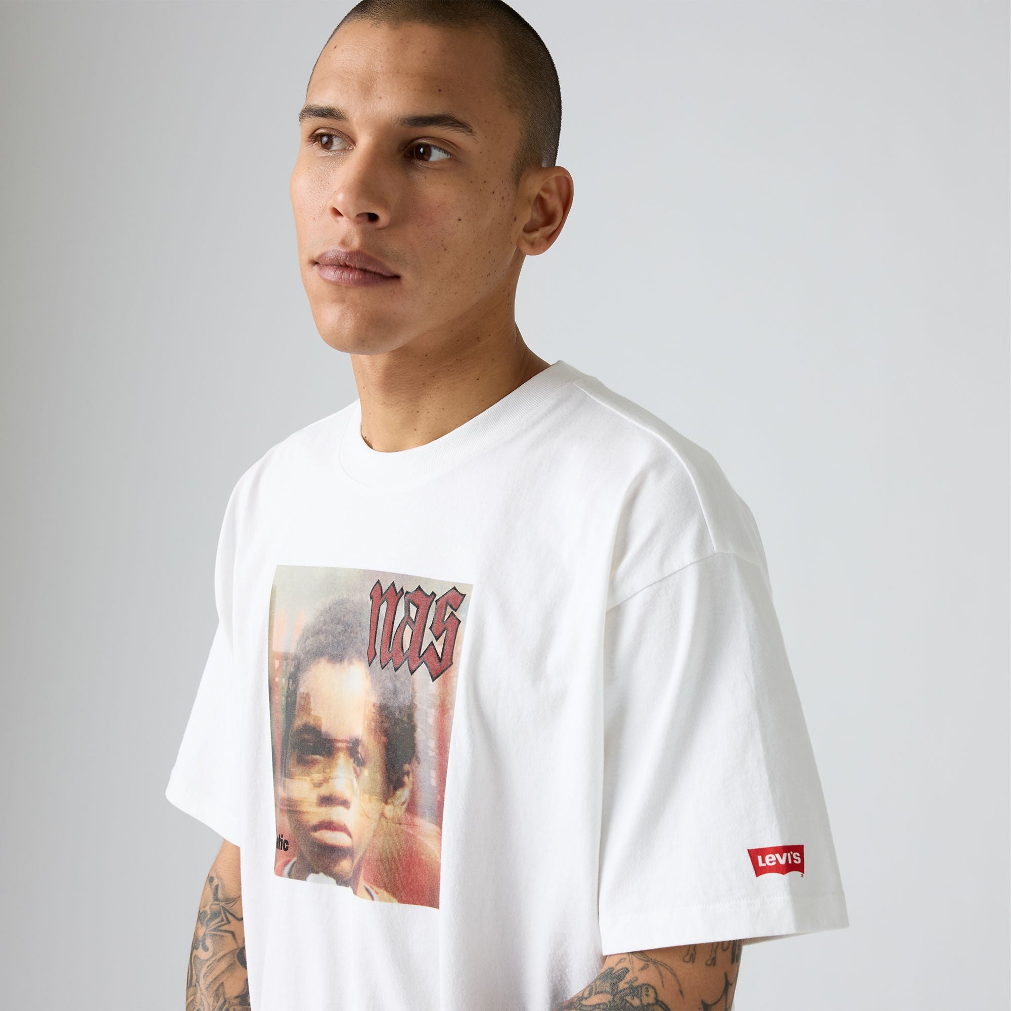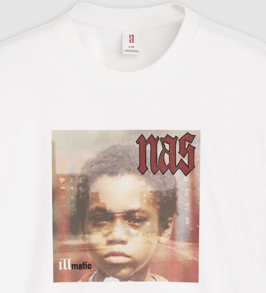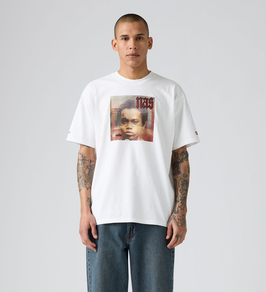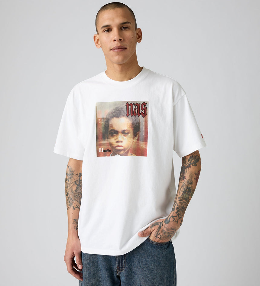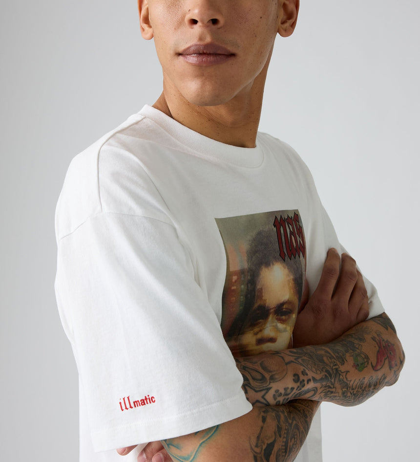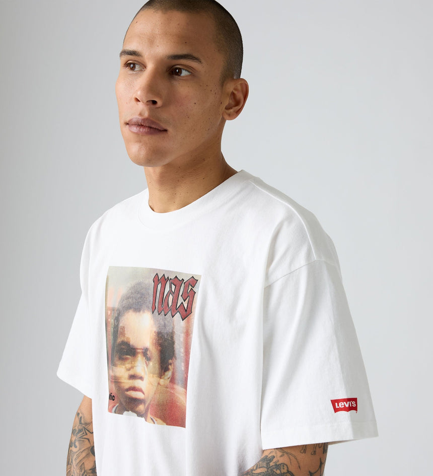 클래식한 크루넥과 여유 있는 핏에 나스 그래픽 디자인이 특징입니다.