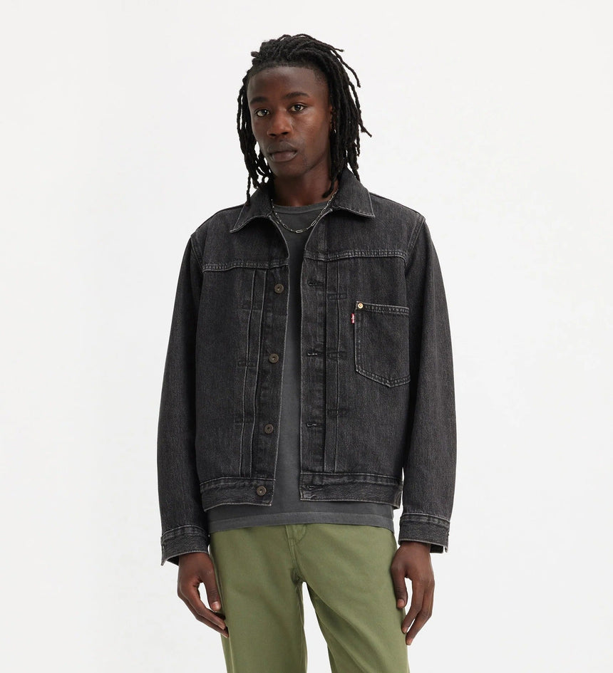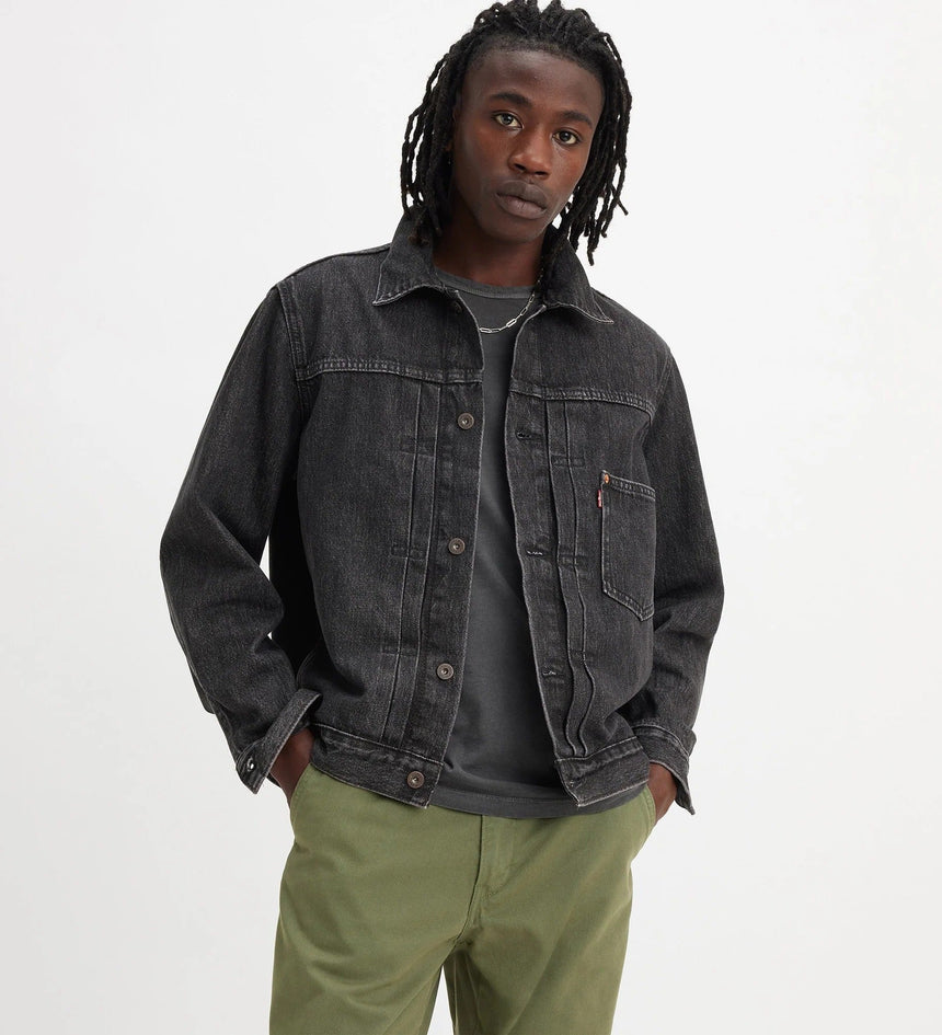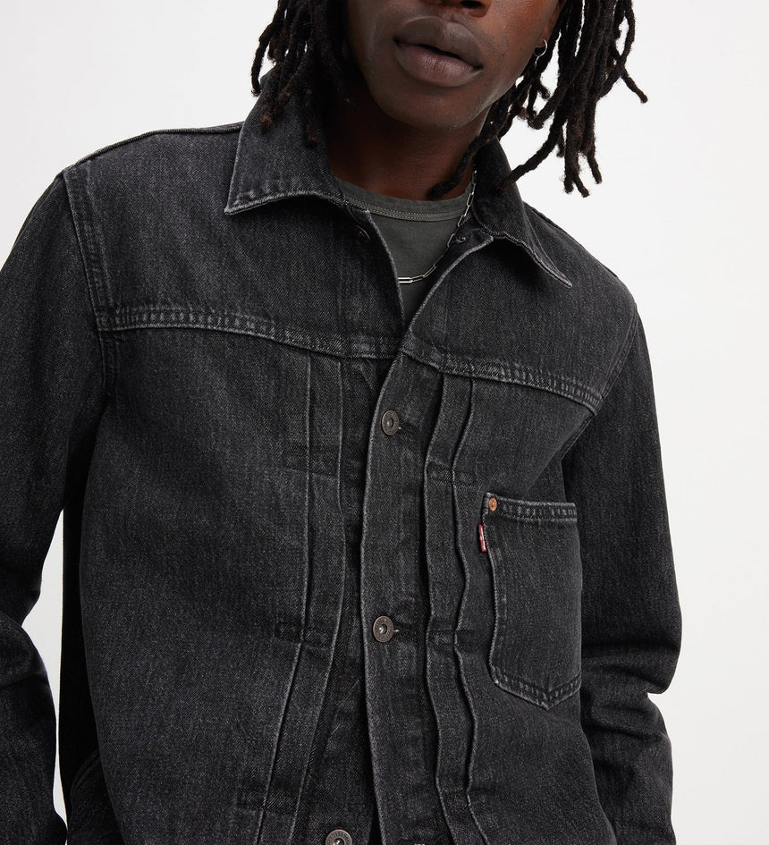 1936년 제작된 타입 I 트러커 자켓의 시대적 디테일과 더블 플리츠 프론트, 싱글 가슴 포켓, 조절이 가능한 신지백 디테일이 돋보이는 제품입니다. 빈티지한 룩에 모던한 터치가 더해진 넉넉한 핏과 사이드 포켓이 특징적입니다.